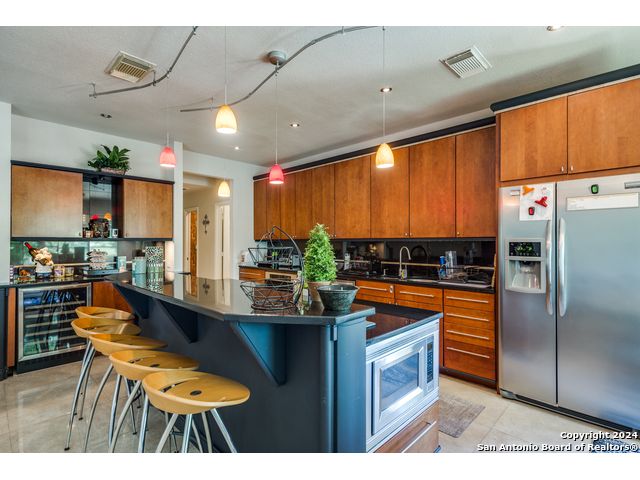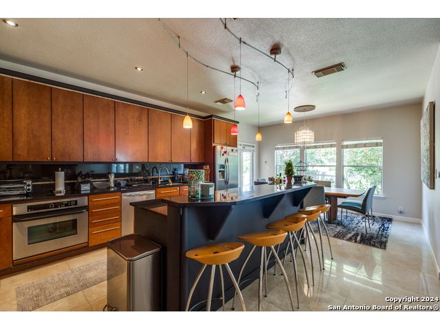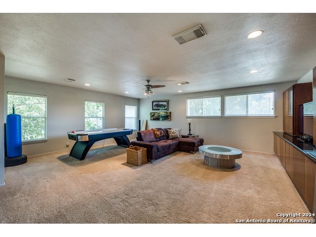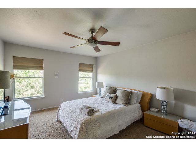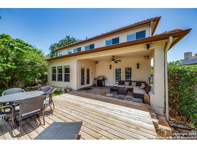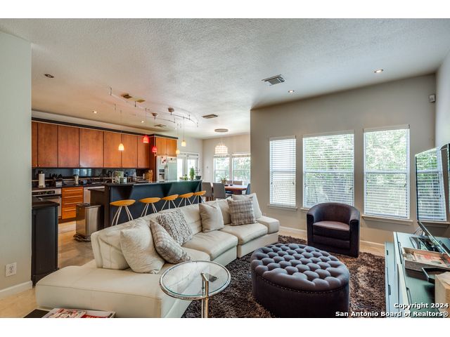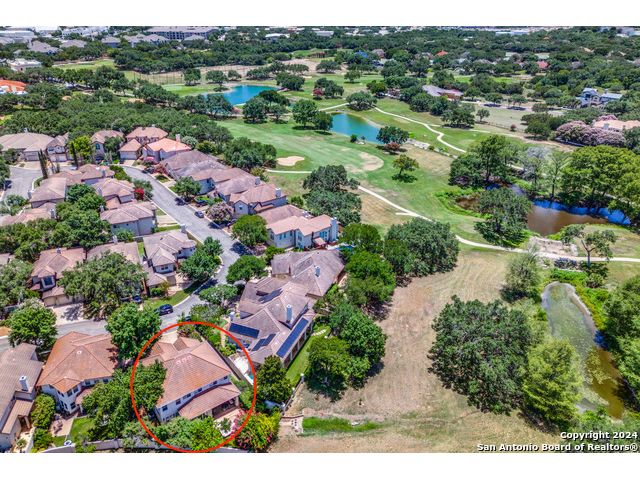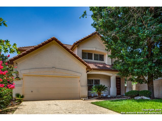 Prime location on the 17th hole of the Sonterra North Golf Course. Beautiful 4-bedroom, 3.5-bath home in the gated community of The Waters at Sonterra, within walking distance to The Club at Sonterra. Gourmet kitchen with granite counters, custom cabinets, breakfast bar, and high-end appliances. Open floor plan with abundant natural light. Primary bedroom located on the main level. Upstairs features a study/exercise room and bedrooms with golf-course views. Landscaped yard and outdoor spaces overlooking the fairway. A rare opportunity in a highly desirable Stone Oak community.