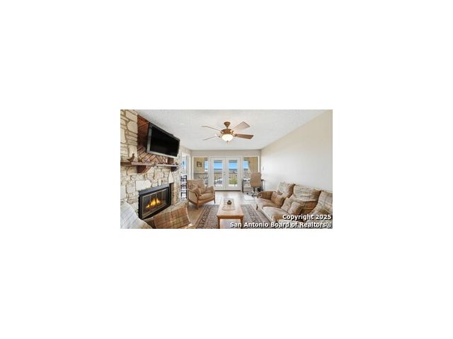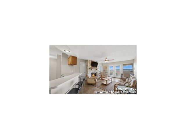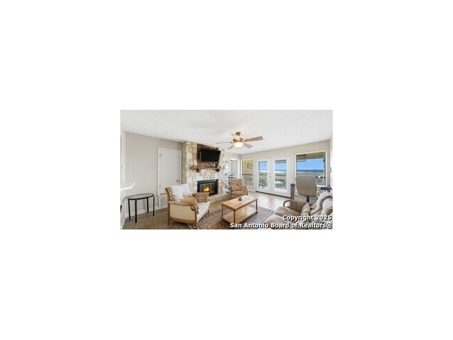 Enjoy breathtaking Canyon Lake views right from your living room or the covered patio. Thoughtfully designed with an abundance of natural light, this inviting one-story condo offers an open layout, a cozy stone wood-burning fireplace, and a relaxed, welcoming atmosphere throughout. The kitchen features generous cabinetry, a wraparound breakfast bar, and a separate dining area perfect for everyday living or entertaining guests. Nestled beneath majestic oak trees, this boutique condominium community of only 16 units offers privacy, serenity, and a true Hill Country setting. Spend your days lounging by the community pool or exploring local favorites just minutes away including Canyon Lake Marina, Potters Creek Park, Jacobs Creek, North Park, Whitewater Amphitheater, and the Guadalupe River Horseshoe. Experience the perfect blend of relaxation, recreation, and Hill Country living in this charming Canyon Lake retreat.