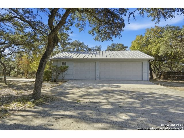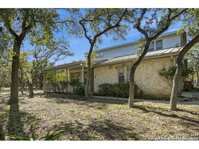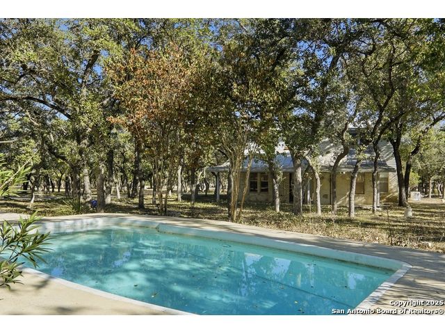 Spacious 2-story home situated on 3.82 acres in the highly desirable Guadalupe River Estates community, offering a rare combination of usable land, mature trees, and private neighborhood access to the Guadalupe River. This property has been well-maintained with numerous recent upgrades, making it an excellent option for buyers seeking acreage, privacy, and meaningful mechanical improvements already completed. The home offers approx. 2,193 sq ft with 4 bedrooms, 2.5 baths, a formal dining room, and a comfortable living area featuring a real wood-burning fireplace. The kitchen includes a pantry, breakfast area, and adjoining dining spaces. An indoor utility room provides added convenience. The layout offers flexibility for a variety of needs, from everyday living to hosting guests. Significant property improvements include a Generac whole-home generator powered by propane, providing automatic backup power for the entire home. Additional upgrades include a metal roof, heat pump, recent water heater, and a recent Kinetico water softener. The property is serviced by a water well and septic system, allowing for lower utility costs and no city taxes. A recently installed front ranch fence and gate with solar opener enhances security, curb appeal, and ease of access. Outdoor living is a major highlight with an in-ground swimming pool, multiple outdoor seating areas, and room to expand or customize. A paved driveway leads to a 2-car attached garage plus an impressive 3.5-car detached garage with an AC-equipped workshop, ideal for projects, storage, or hobby use. Several outbuildings and covered areas provide additional storage options. Guadalupe River Estates offers private river access for property owners, including a park with picnic areas, covered pavilion, walking space, and a pickleball court. Located in Comal ISD with convenient access to highway corridors, this property offers a peaceful Hill Country setting while still being close to shopping, dining, and daily conveniences. This home presents an excellent opportunity for buyers seeking acreage, privacy, neighborhood amenities, and a property with major systems and upgrades already completed.