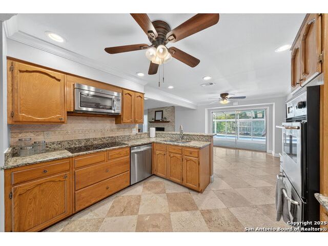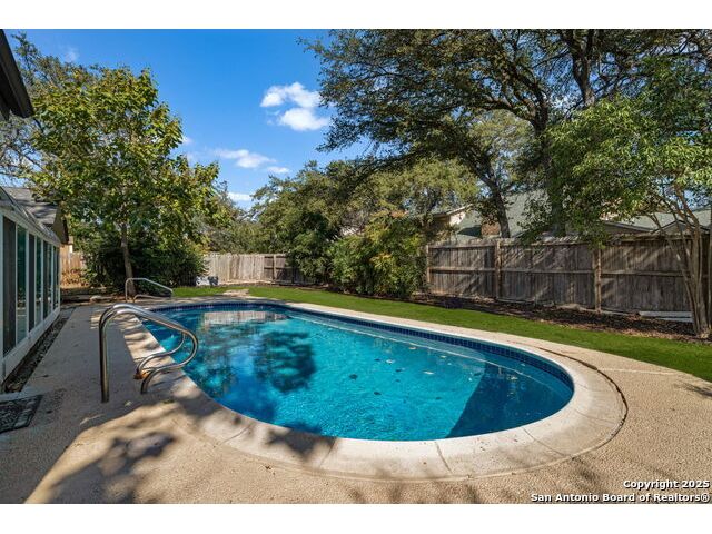 Welcome to 12918 Queens Forest, a beautifully maintained one-story home nestled in the serene Park Forest community of north central San Antonio. This charming residence offers a perfect blend of comfort, style, and functionality, making it an ideal choice for anyone looking for a peaceful retreat. With 3 bedrooms and 2 bathrooms, the home spans 2,041 sq ft, providing ample space for relaxation and entertainment. The versatile layout ensures that every room serves a purpose, catering to your unique needs. The open-concept living and dining areas flow effortlessly for seamless entertaining. Formal dining room is a very good size at 15X12. It is easily usable as an office/study. Versatile Sun Room, equipped with it's own HVAC system, can be transformed into an additional living area, a home gym, or a cozy reading room, offering endless possibilities to suit your lifestyle. Step outside to discover a backyard oasis. Whether you are lounging by the sparkling inground pool, hosting a barbecue, or simply enjoying the tranquility, this space is perfect for outdoor living. Some of the updates that have been done in this home include: new windows approx 10 yrs ago, kitchen ceiling was elevated during its remodeling, granite counters installed in kitchen, heavy composition roof installed approx 8-10 yrs ago, pool safety drain installed approx 3 yrs ago when pool was replastered, new garage doors and openers plus a brand new water heater installed in 2025.