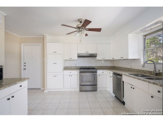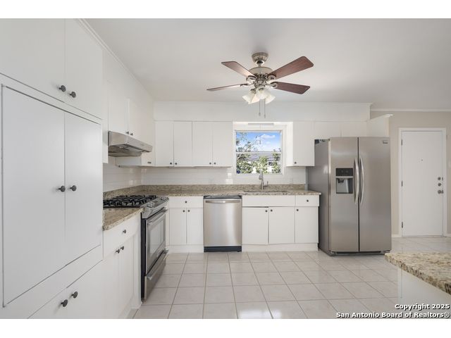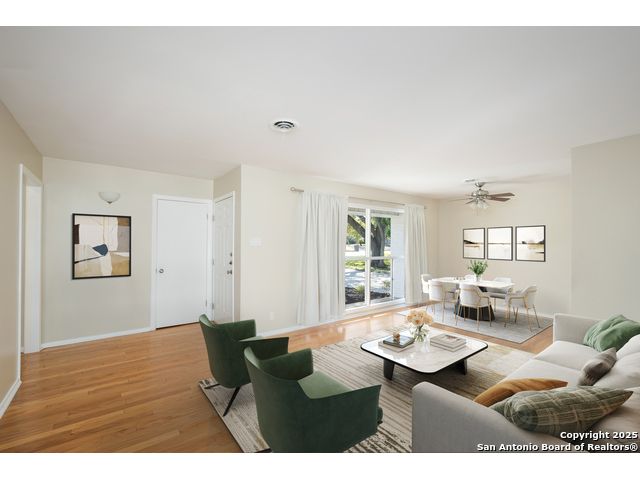 Welcome to this timeless and beautifully maintained midcentury modern gem, nestled on over a quarter of an acre in the highly sought after Alamo Heights ISD! This stylish single-story home offers 2 bedrooms, 2 full baths, and 1,375 sqft. of thoughtfully designed living space. This charmer has an inviting layout, hardwood and tile flooring, clean lines, and classic architectural character. The updated kitchen includes granite counter tops, stainless steel appliances, a gas cooktop, and a refrigerator that conveys. A spacious laundry room offers convenience with a washer and dryer that are also included. The primary suite is a true retreat with a custom cedar lined closet and a charming window seat. Enjoy outdoor living in the expansive private backyard with updated landscaping and privacy fencing. Located just minutes from popular restaurants, shops and parks in central San Antonio this home is in the perfect location.