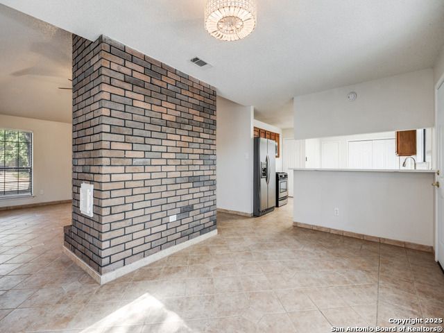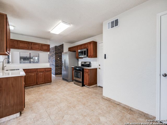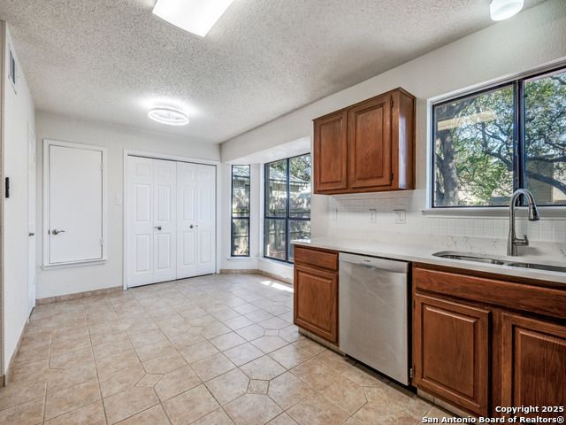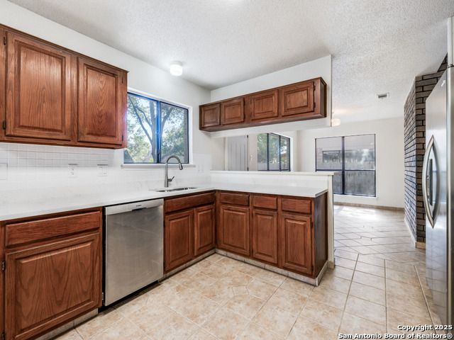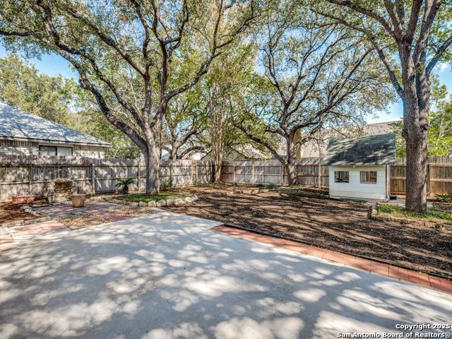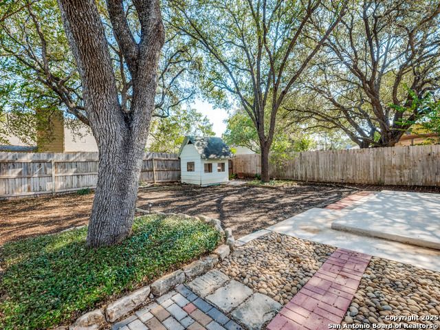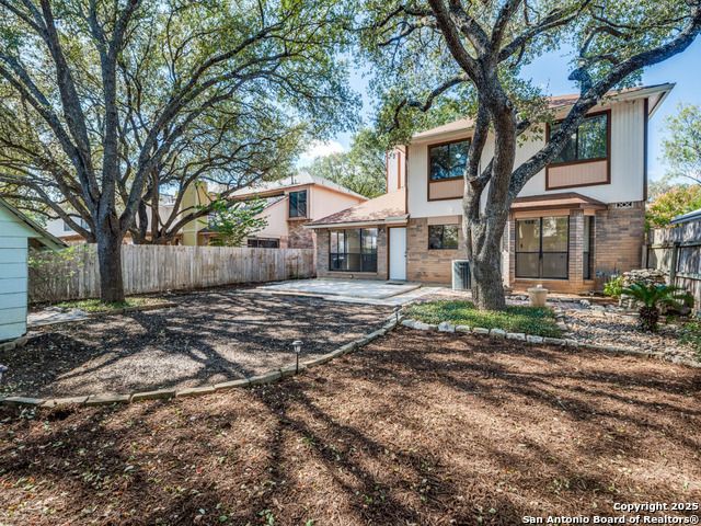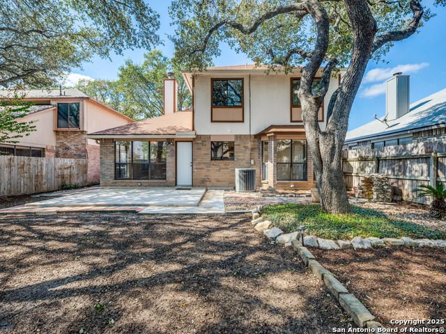 Beautiful brick fireplace to enjoy with your loved ones this holiday season! Gorgeous trees and lots of privacy in the backyard. Very peaceful setting near the Alamo Farmsteads. Lovely kitchen with nice stainless appliances. Enjoy gas stove and newly installed Quartz countertops. Dine overlooking the lush backyard in the separate dining room. Or use as office. Great Floor plan. Window seats add to the appeal of the main living room. No carpet. Interior freshly painted. Brick exterior; Privacy fencing and lots of mature trees. Very EZ access to So TX Medical Center, as well as most major employers, such as USAA, Valero, UTSA, more. Near hiking and biking trails of Leon Creek Trailway and many parks. EZ access to tons of shopping, hospitals, etc.