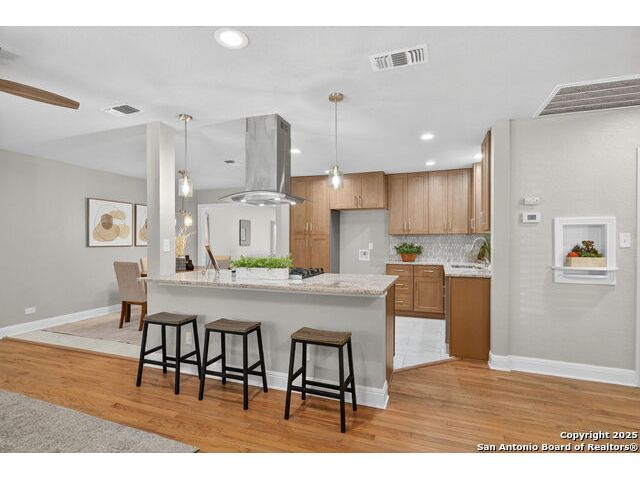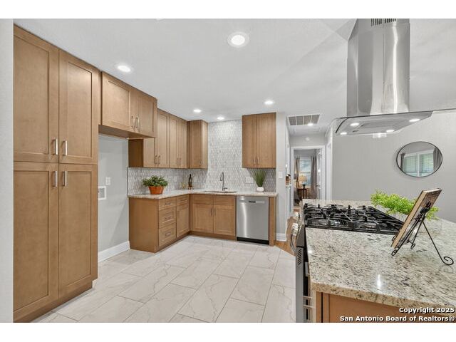 Situated in the highly desirable Terrell Heights neighborhood, and located within that sought-after Alamo Heights School District, this beautifully remodeled home shines! You will love the refinished wood floors, and stylish porcelain tile, as well as the fresh new cabinets paired with sleek granite countertops and modern appliances. The updated bathrooms offer a clean, contemporary feel, while a tankless water heater adding efficiency and convenience. Throughout the home, 2" faux wood blinds provide an elegant finishing touch. Showcasing the awesome new Carport, this fabulously finished home blends comfort, quality, and an exceptional location, offering the perfect blend of style, comfort, and convenience. Check it out today! You won't be disappointed!