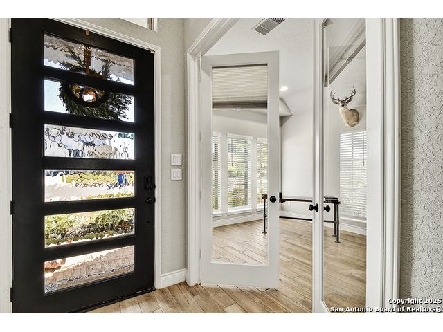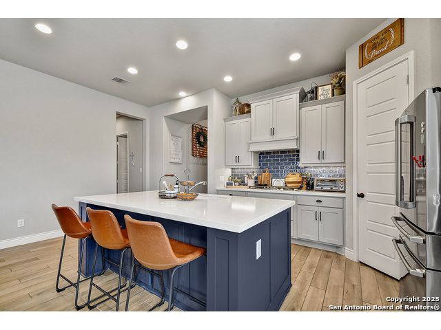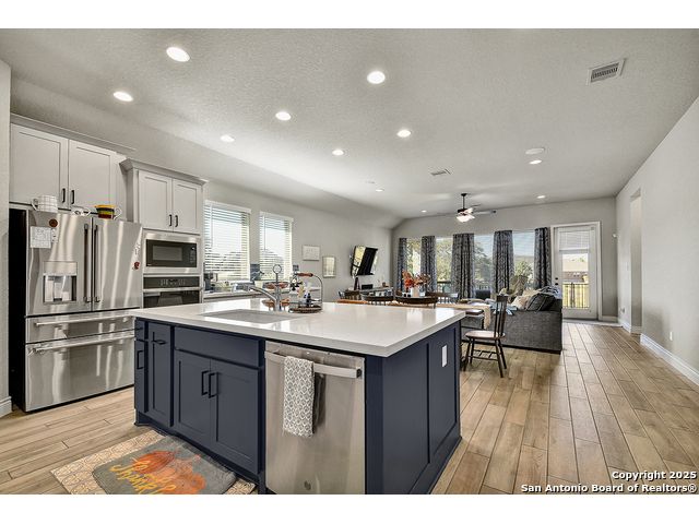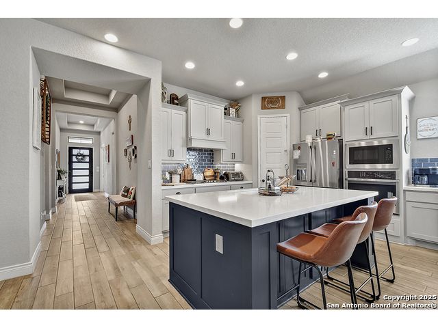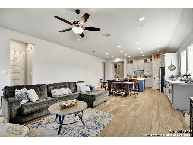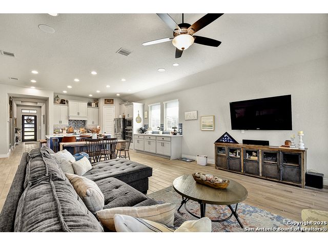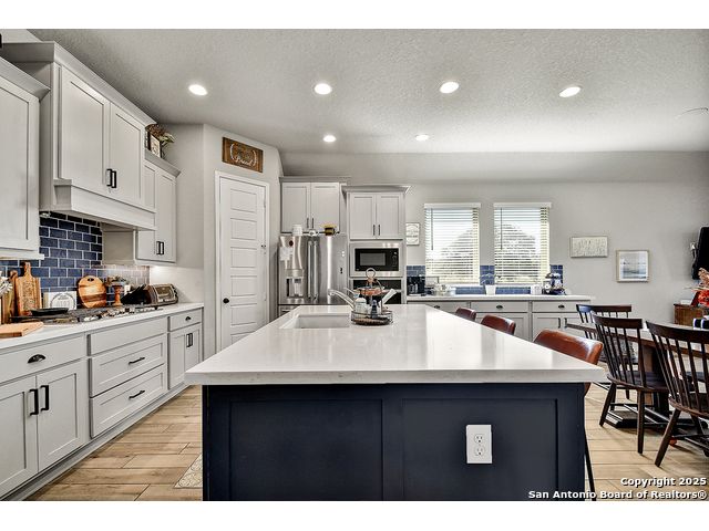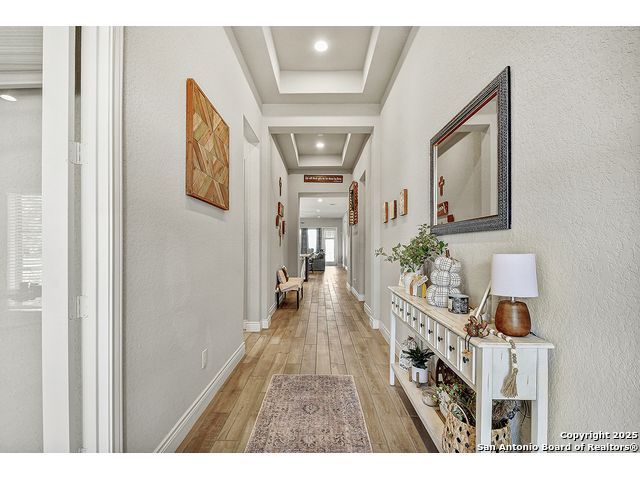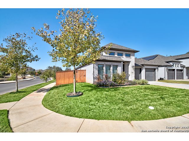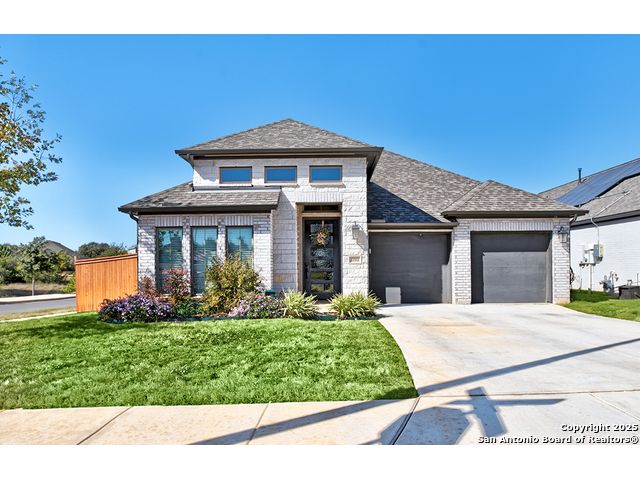 Welcome to this exceptional 3-bedroom, 3-bath Perry Home in vibrant New Braunfels-where thoughtful design, modern finishes, and community convenience come together seamlessly. Situated on a prime corner lot, this home features striking curb appeal with light stone exterior, manicured landscaping, and a warm, inviting entry. Inside, you're greeted by a long, elegant hallway accented with tall ceilings and natural light, leading you into the heart of the home. The open-concept kitchen is a true showpiece, offering a large island, sleek tile backsplash, upgraded stainless-steel appliances, and abundant custom cabinetry. Perfect for hosting or everyday gatherings, the kitchen flows effortlessly into the main living and dining areas. Each bedroom is generously sized, and the home includes three full baths for added privacy and convenience. A 3-car tandem garage offers versatility for parking, storage, or workspace needs. This sought-after community features on-site schools, pocket parks, walking trails, and a refreshing neighborhood pool, making daily life both convenient and enjoyable. Nearby shopping, dining, and commercial hubs add to the unbeatable location. Crafted with the quality and timeless style Perry Homes is known for, this property blends comfort, character, and convenience-making it a must-see in New Braunfels.
