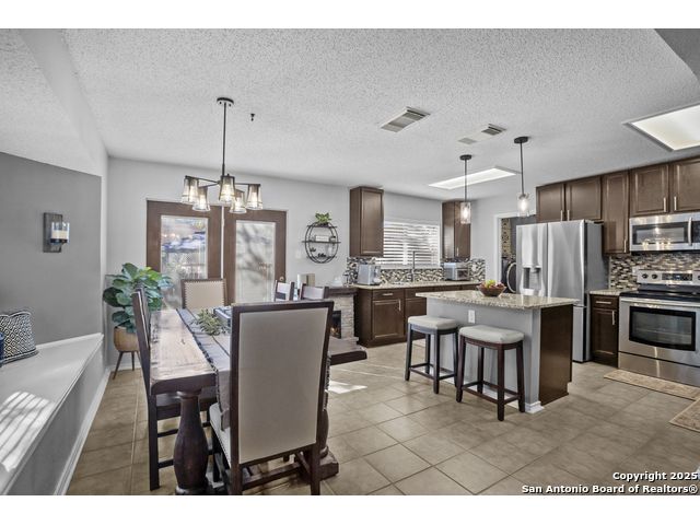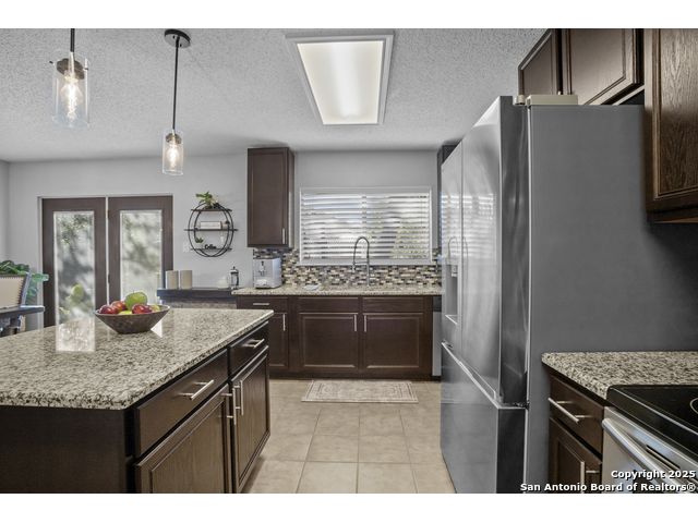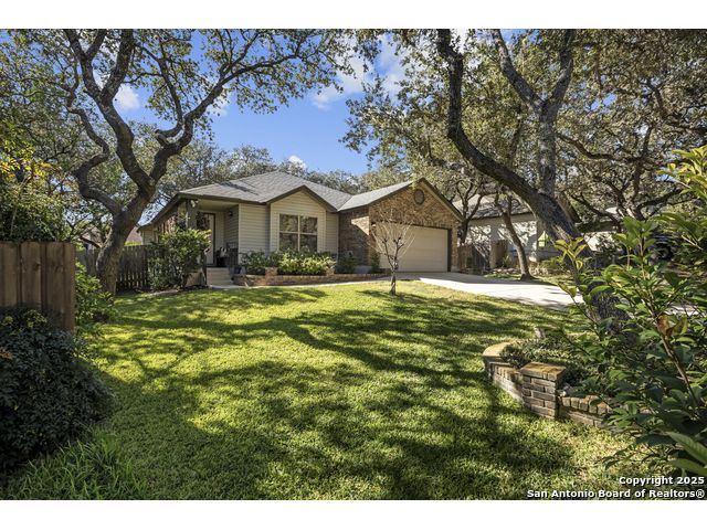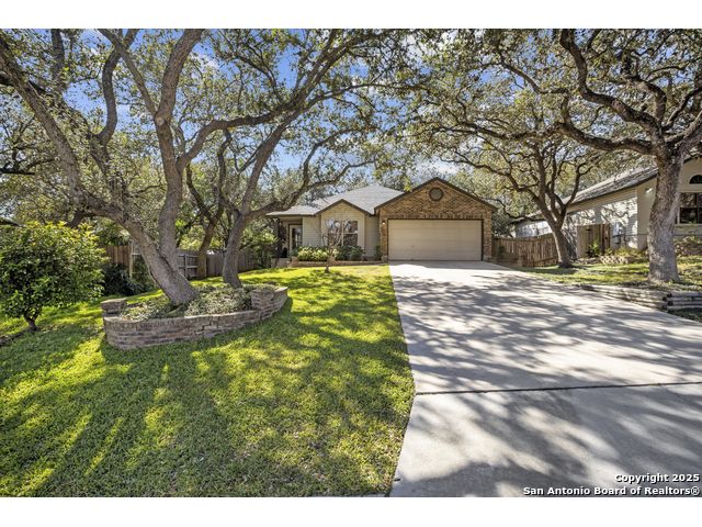 Welcome to this charming single-story home in Schertz, offering a bright open layout designed for effortless living. The connected living room and kitchen create a true open floor plan, perfect for gatherings and everyday comfort. The island kitchen features granite countertops, stainless steel appliances, pendant lighting over the island, a decorative tile backsplash, abundant cabinetry, and plenty of workspace for cooking and entertaining. The primary suite includes a spacious double-vanity bathroom with a sleek stand-up shower and a well-sized walk-in closet. With three bedrooms and two full baths, the home provides a functional layout ideal for families, guests, or a home office. Step outside to a peaceful backyard retreat where a patio umbrella (which conveys) is surrounded by mature trees, offering shade, privacy, and an inviting space for relaxation. Located in a desirable Schertz neighborhood near local parks, schools, shopping, and commuter routes, this home combines convenience, comfort, and everyday livability. Additional improvements include a recently replaced HVAC ( December 2023), a recently replaced roof (2022), and fully renovated bathrooms completed within the last year using upgraded, premium materials.