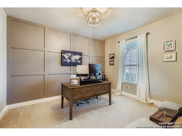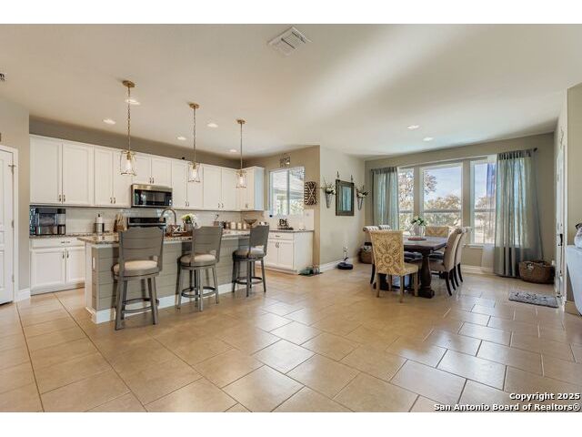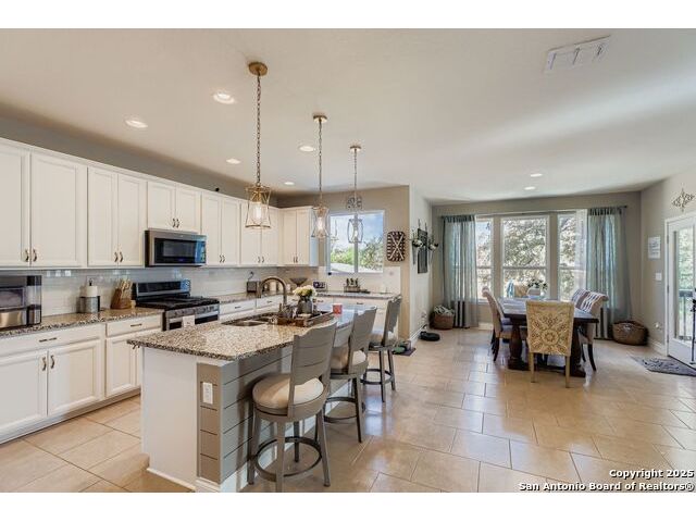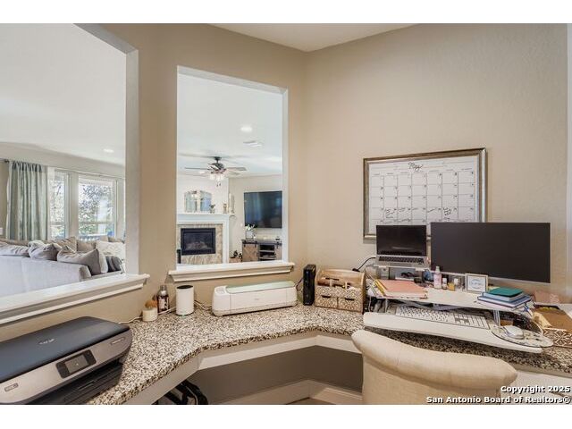 This home offers the kind of space that transforms how you actually live. From the welcoming front porch, you're drawn into an open floor plan where natural light seems to pour from every angle, creating rooms that feel connected yet distinct. The main living area centers around a generous family room anchored by a corner fireplace - a natural gathering point that provides both warmth and visual interest without feeling forced or staged. The kitchen and dining area flow seamlessly together, with windows bathing the space in daylight. Stainless steel appliances and granite counters suggest someone thought about durability and maintenance, while the island kitchen layout means you're never isolated from household activity. The dining room's abundance of natural light makes everyday meals feel less routine and special occasions feel distinct. Beyond the main living spaces, you'll find a study and gameroom that allows everyone to pursue their own interests without retreating to a bedroom. Four bedrooms and two and a half bathrooms mean the home scales with your needs - everyone has space that feels theirs, and morning routines happen without the usual bottlenecks. The outdoor living area transforms the backyard into an extension of the home. The covered patio provides comfortable shelter for year-round entertaining, while the inground heated pool eliminates the temperature excuse for staying inside during cooler months. A separate firepit creates another gathering zone, perfect for conversations that stretch into the evening. Privacy fencing encloses the entire space, establishing clear boundaries between your world and the neighbors'. Location matters here. Lantana Oaks delivers the kind of residential stability and school quality that shapes childhood - the Northside ISD distinction means education is genuinely competitive. Positioned on a quiet cul-de-sac, the home sits in one of those neighborhoods where neighbors know one another. The energy-efficient construction and water softener reveal practical choices that compound into meaningful savings year after year. Built across 2,835 square feet, this home reflects thoughtful proportions rather than unnecessary sprawl. Every room earns its place. There's substance here - real functionality wrapped in a layout that makes daily living genuinely better.
