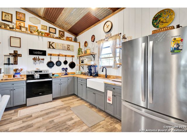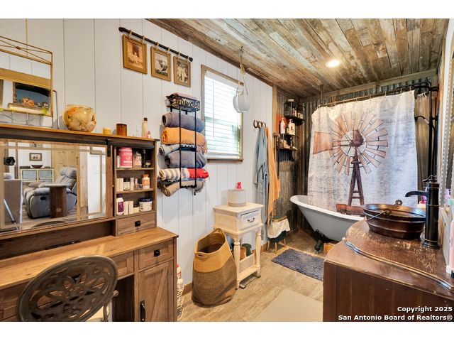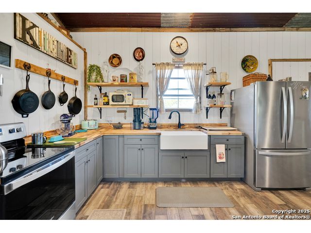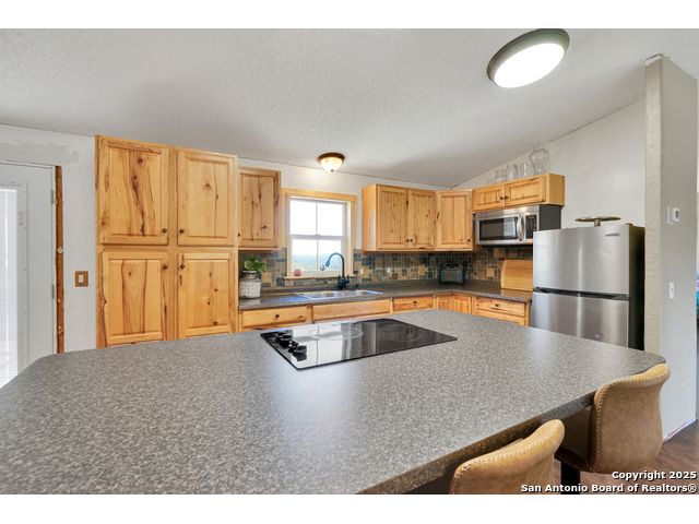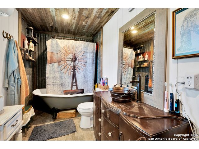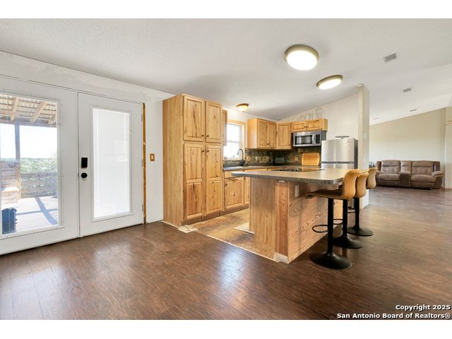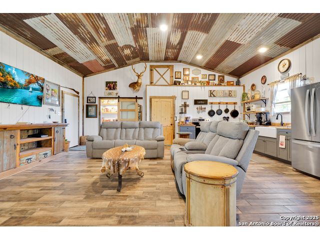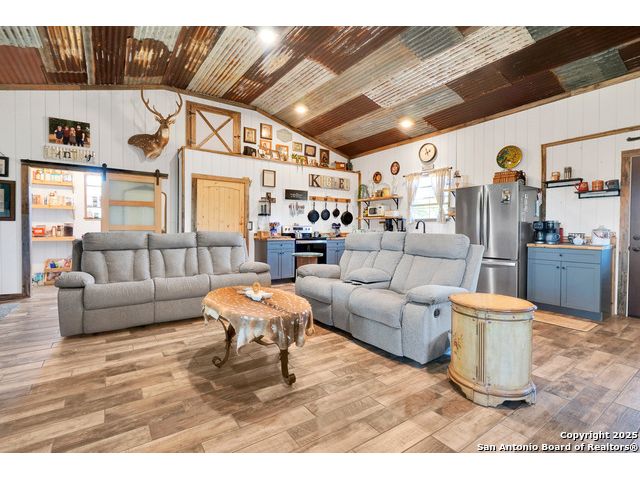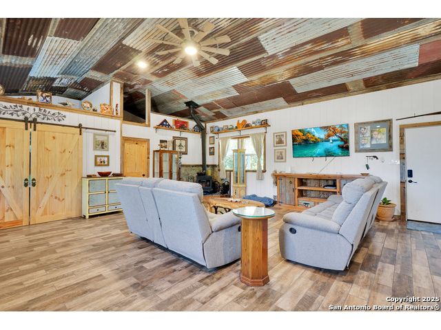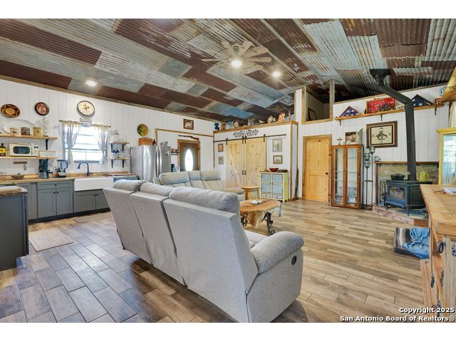 Welcome to this truly unique property in the desirable Woodcreek community, offering the perfect blend of comfort, space, and versatility. Nestled on an impressive 4.5-acre lot, this exceptional estate includes not only a spacious 2,300 sq. ft. single-level manufactured home but also a 1,000 sq. ft. Barndominium (2024)-making it ideal for multi-generational living, a guest retreat, or potential income opportunity. The main residence features a beautiful open floor plan designed for modern living. Inside, you'll find 4 bedrooms and 2 full bathrooms, offering plenty of room for family and guests. The living area is bright and inviting, with a seamless flow between the living room, dining space, and kitchen-perfect for entertaining or enjoying quiet evenings at home. The kitchen boasts ample cabinetry, Butcher Block countertops, generous counter space, and modern finishes, creating a warm and functional centerpiece for daily life. The primary suite offers a private retreat, complete with a full ensuite bathroom, while the additional bedrooms are well-sized and thoughtfully placed to provide comfort and privacy for everyone. Beyond the main home, the barndominium is a standout feature of this property. Built in 2024, the space spans 1,000 sq. ft. and provides endless possibilities-ideal for guests, extended family, or even a home office or studio. With its newer construction, it delivers a fresh, modern touch to this expansive property. Outdoors, you'll enjoy the tranquility and freedom that 4.5 acres provides. There's ample space for recreation, gardening, or future expansion, plus a storage shed for tools and equipment. You are even allowed to have livestock! Whether you envision hosting gatherings, starting a small hobby farm, or simply enjoying wide-open Texas skies, this property offers room to make it your own. This Woodcreek gem combines the best of country living with modern comfort and convenience-a rare opportunity to own a multi-use property with space, flexibility, and charm. Don't miss your chance to experience this remarkable home and its endless potential. Schedule your private tour today!