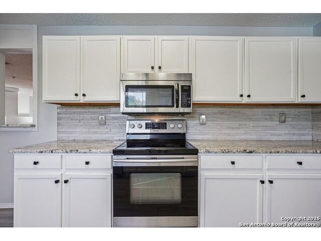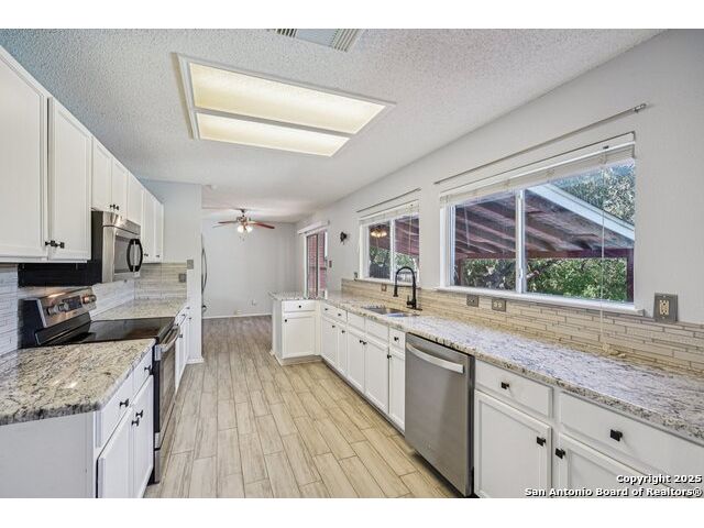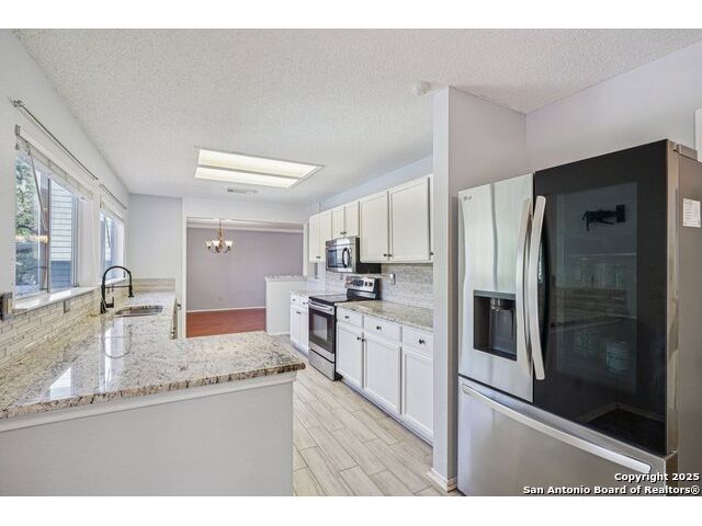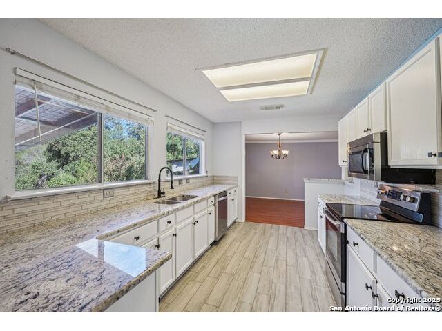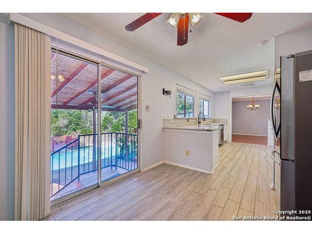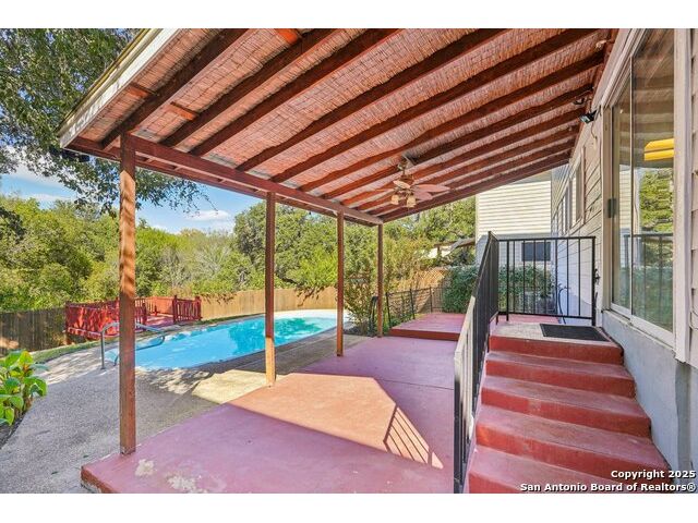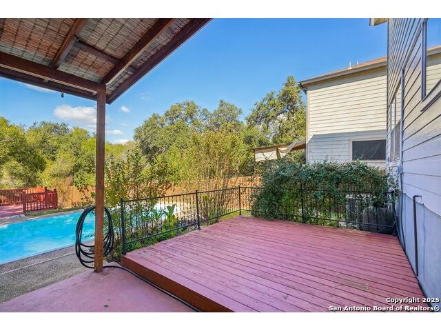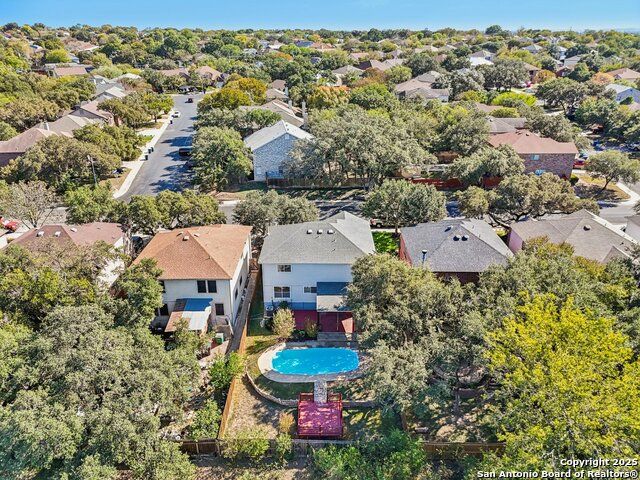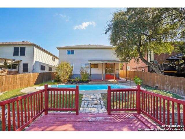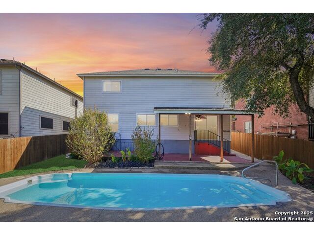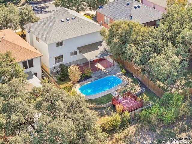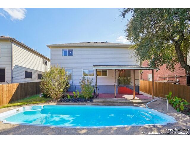 Welcome to this 4 bedroom, 2.5 bath home located in the established and sought after neighborhood of Park Place. This is a single owner home and one of the favorite features of this home is the lovely backyard with in-ground pool, which backs up to a green space and old creek bed. It's perfect for entertaining a large group, but it's also perfect for a quiet night of reflecting. This backyard is tranquilo. Inside you're welcomed to a bright open living/dining space with lots of windows, a fireplace and half bath. The lovely kitchen overlooks the pool and features a second eating area, tile flooring, lots of countertops, stainless appliances, granite/tile backsplash and an attached laundry/pantry. The second story has 4 bedrooms including a huge primary suite with walk-in closet, attached bath and linen closet. There's a full bath and three additional bedrooms, all with nice sized closets. There's lots of storage throughout plus a bonus room off the laundry room. There's a half garage/storage area too! With a great location off Potranco Road, you have access to all the shopping you need. Near Sea World. Downtown and Airport 25 minute drive. Come see this serene space.