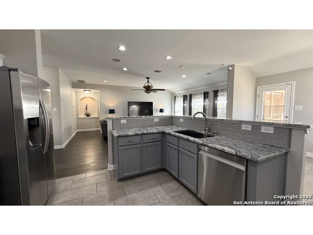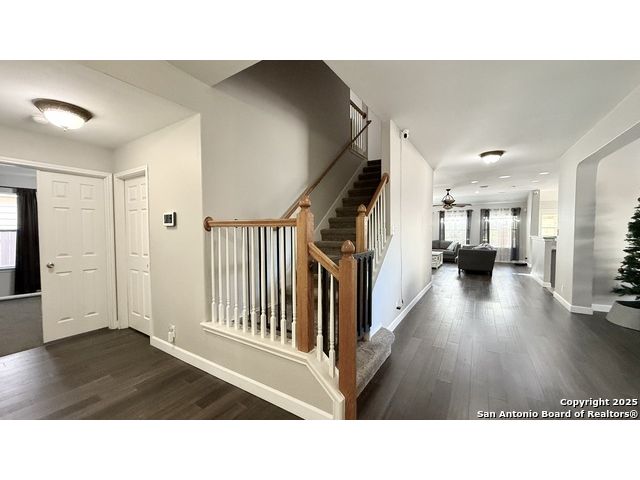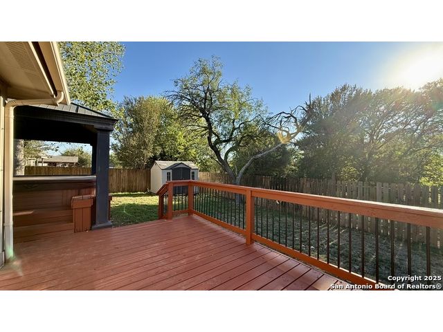 Welcome to this 1.5 story, beautiful home with plenty of square footage for the whole family to not feel like they're on top of one another! Backed up against a greenbelt, this home has hard surface wood flooring in all gathering areas, a very large loft upstairs that can be converted into a media room or flex room, whatever works best for you. The back yard has a screened-in porch leading to a backyard gazebo where the hot tub sits. The master bedroom is the private escape and it's equipped with a full bathroom with double vanity sinks and separate tub and shower combo. To help with hard water, a water softener system, located in the garage will convey with the home. The backyard also has TWO storage spaces for yard equipment or anything else you need for space! The foundation towards the front of the home was repaired in September of 2025 and has a transferrable warranty. Conveniently located in a cul-de-sac right off of 1604, JBSA Randolph and Converse City Park. You definitely want to check this home out! It might be just what your family needs!