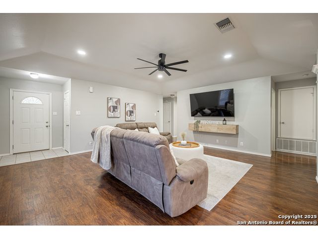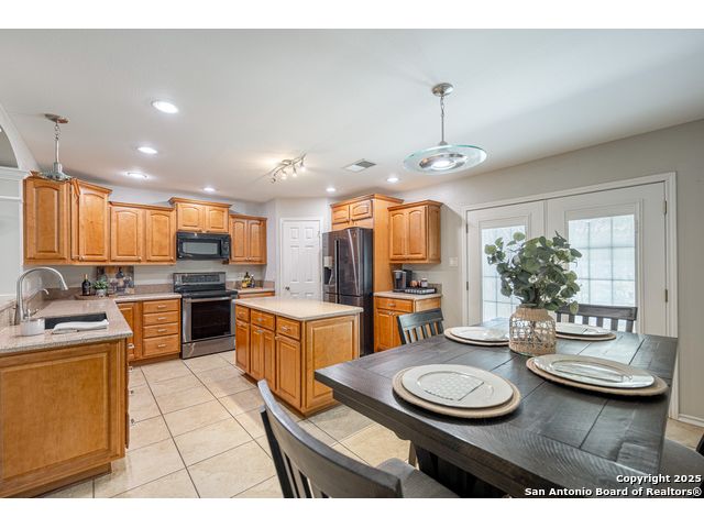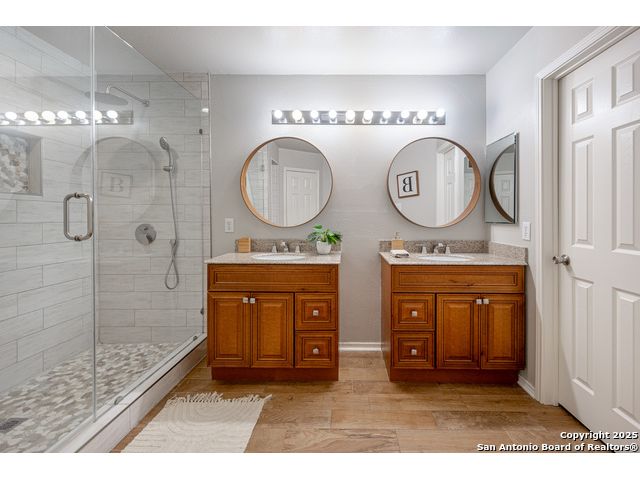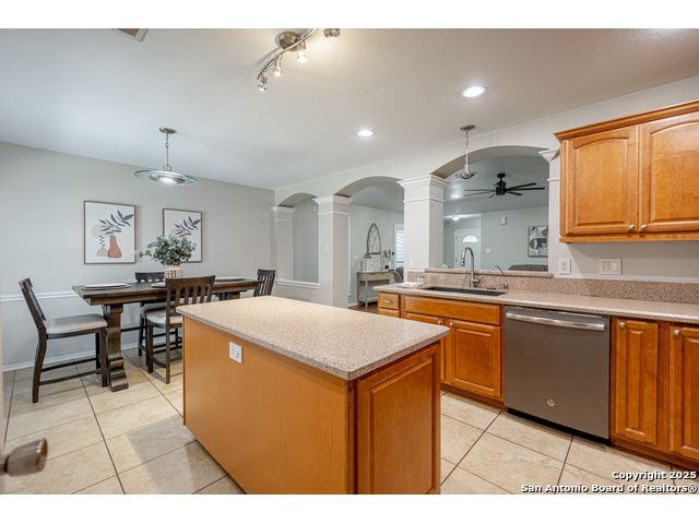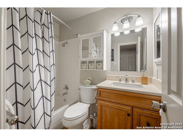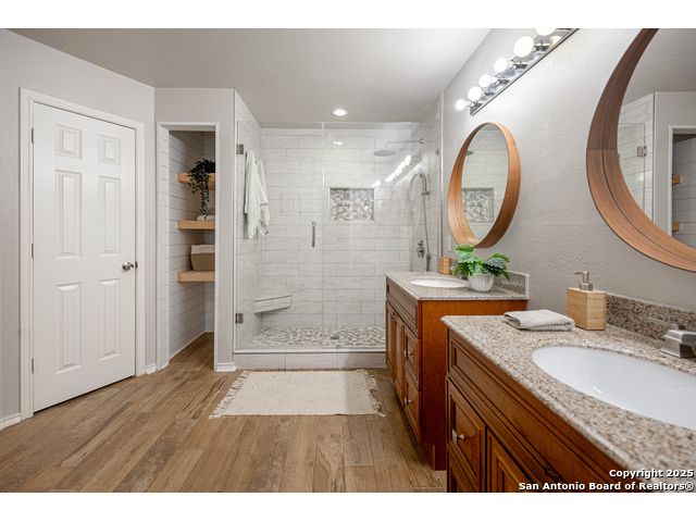 Darling Single Story Charm! Gated Neighborhood in Desirable 78247 Area! Exclusive and Pristine*Shows Like a Model*Spacious and Open*Custom Shutters*Natural Light*Double French Doors*Open Floorplan*Large Primary Suite w/ Full Bath*Oversized Shower w/ Mudset Tile Flooring, Double Vanities, Custom Touches To Include Lighting, Accents, Storage, Shelving*Large Walk-In Closet*Two Large Secondary Bedrooms*Full Bath w/ Tub/Shower Combo*Custom Kitchen w/ Custom Cabinetry, Counters, Appliances and Large Kitchen Island*Dining Area Overlooks Living Area & Kitchen*Arches, Accents, and So Much More*French Doors Lead to Inviting Private Level Lot-TREES! Shed, Privacy Fence, Extended Concrete Patio-Perfect for Outdoor Living and Entertaining*Two Car Garage w/ Water Softener System, Storage*This Home is a Must See!