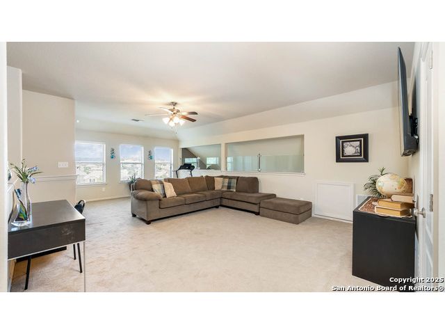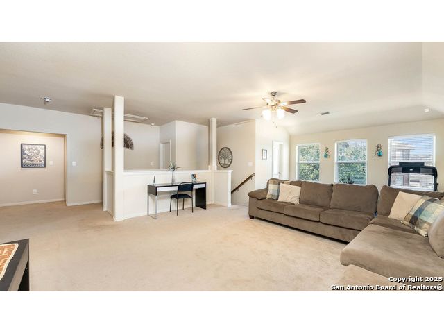 Location, location, location: in The Ridge at Canyon Springs gated community on a private and peaceful Cul-de-Sac. This is a beautiful and spacious 5 bedroom, 3.5 bathrooms home with 3,319' sq ft. New roof was installed in April of 2025! The office in the front of the house could also be used as a formal dining room... The large kitchen with gas stove opens to the breakfast area that does fit an 8 seat rectangular dining table, it then opens into the family room for great interaction. Upstairs there is a Huge Game Room with added safety protection on the half wall overlooking the living room, plus 4 bedrooms, all with walk-in closets and 2 full Jack and Jill bathrooms... On the extended back deck you can enjoy your morning coffee with a wonderful view, which becomes a stunning view in the evening. Priced to sell fast with the $15,000 upgrade of the brand new laminate flooring in owners bedroom and stairs, with new premium carpet installed in owners huge closet downstairs, and in all 4 bedrooms upstairs, including closets, game room/theater and halls. The original downstairs tile remains in the front office or formal dining, hallways, kitchen, breakfast area, game room, and every bathroom. HEB and CVS are only .8 miles away! You could easily make this your Forever home.!