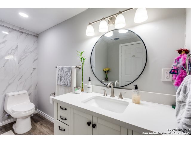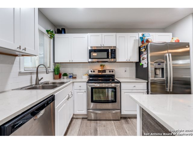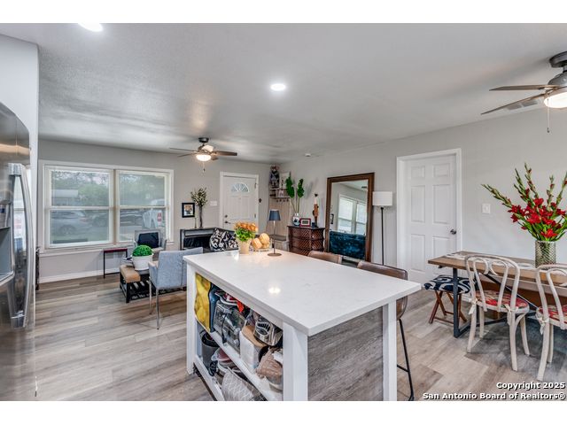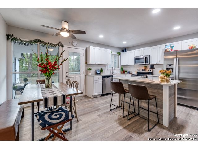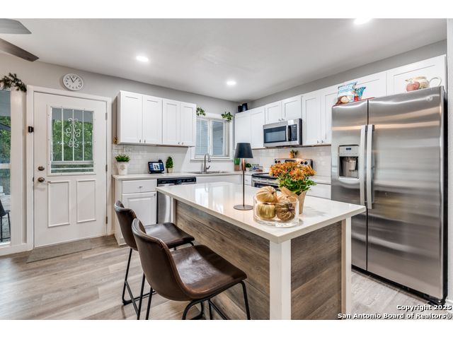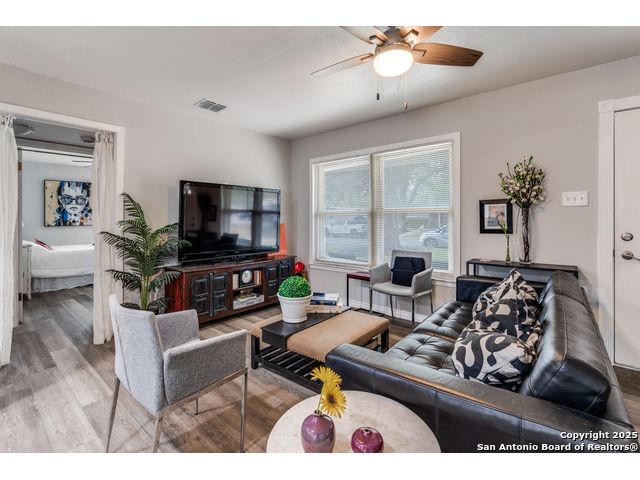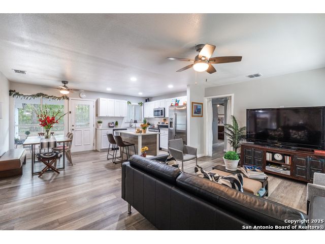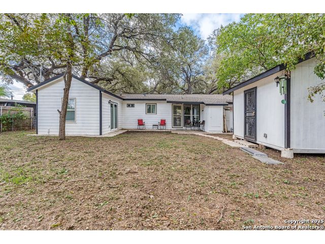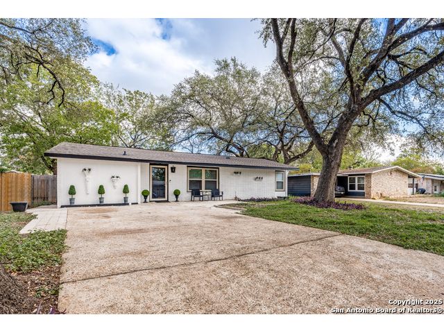 Step into this beautifully remodeled single-story home nestled on a spacious lot surrounded by mature trees, offering both tranquility and privacy. Every detail has been thoughtfully upgraded, including a new HVAC system, electrical wiring, water heater, and modern appliances-making this property truly move-in ready. Enjoy the versatility of a finished shed with its own dedicated electricity, ideal for a private office, creative studio, or workshop. The backyard is a secluded oasis, perfect for relaxing or entertaining under the canopy of trees. Located in a centrally positioned neighborhood with no HOA restrictions, this home combines convenience with freedom. Whether you're commuting, exploring local attractions, or hosting guests, you'll appreciate the easy access to everything San Antonio has to offer. Buyer and agent to verify all information prior to submitting offer.