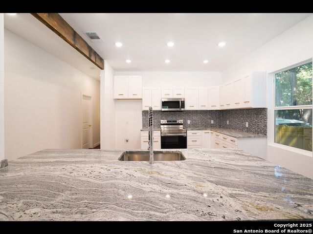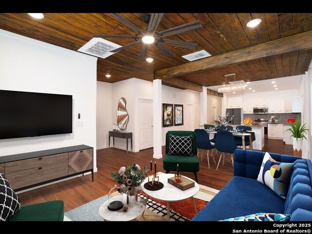 Welcome to this charming 1940s remodeled home seamlessly marries vintage appeal with modern comforts. The exterior exudes a timeless elegance with its mid-century architecture, highlighted by clean lines and a low-sloping roof. Inside, the meticulous remodel has breathed new life into the home while preserving its retro essence. Upon entering, an open-concept layout creates a spacious and inviting atmosphere, combining the living, dining, and kitchen areas.