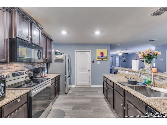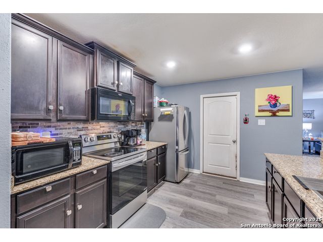 Welcome to Luckey Ranch. Come see this well maintained beauty in person. Just a few minutes from 1604 off HWY 90. This home features 3 bedrooms 2.5 baths. An open floor plan with new LVP floors installed in 2024. The kitchen has custom backsplash with plenty of counter space. A new stove was added in 2024 and a new kitchen sink just add to all the wonderful improvements the seller has done. The refrigerator, along with the washer and dryer can convey with reasonable offer. Upstairs you`ll find 3 bedrooms and 2 full bathrooms. Outside a 12/20 covered concrete patio was added in 2024 with HOA approval. The original side gate was replaced in September. The backyard is way larger than its neighbors due to how the house is positioned on the circular street. The pictures on MLS are nice but this gem is better seen in person. The home and upstairs carpet will be professionally cleaned prior to closing. Schedule your showing today.