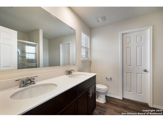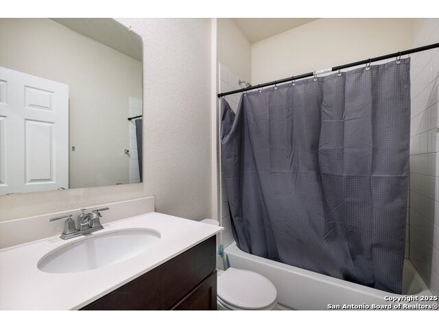 Here is a special opportunity to own a property that is priced below market value. This charming two-story home is located just outside of Loop 1604 near Culebra Road. It features four bedrooms, three bathrooms, and a two-car garage, making it an ideal investment or a perfect starter home for a first-time buyer. Upon entering, you will find a dedicated study or office space that offers flexibility and could easily be converted into an extra bedroom, playroom, or game room. A secondary bedroom and full bath are conveniently located downstairs, making it perfect for a mother-in-law suite. The main living area provides an open-concept flow into the kitchen and dining area. The kitchen is equipped with solid countertops, wood cabinets, a dishwasher, a built-in microwave, a cozy pantry, and an island that serves as a breakfast bar. The second floor features the laundry room, a spacious loft area perfect for an additional office, media, or game room, and the remaining bedrooms, including the Master Suite. The Master Bedroom is generously sized and includes a double vanity bathroom leading to a very roomy walk-in closet. The backyard is great for entertaining or relaxing, featuring a cozy covered patio and a privacy fence. The neighborhood offers sidewalks, streetlights, and a convenient community mailbox located directly across the street from the property. The location provides easy access to nearby shops, restaurants, and schools, and is only minutes away from Helotes, Loop 1604, and SeaWorld. Make an appointment to schedule a private viewing of this wonderful home.