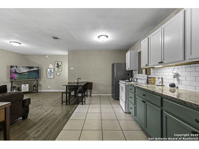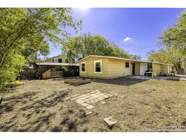 Welcome to this charming one story ranch style home in the sought after 78227 neighborhood steps from Lackland Air Force Base. This home is ideal for military personnel, first time buyers, or investors. Offering 3 bedrooms and 1 bath just under 1200 square feet, this thoughtfully updated home features a comfortable open floor plan and a great layout. Inside, the bright open living and dining area flows easily into the kitchen, making it perfect for everyday living or entertaining. The home has new exterior windows, a new sliding patio door, and a new front door, giving it an updated look and added efficiency. The AC was recently cleaned and serviced as well. The backyard is a standout feature with its large size and no back neighbors, offering privacy and plenty of room for gatherings, gardening, or future additions. Convenience is unbeatable with a nearby H E B, shopping, dining, and quick access to major roads and military entry points. To make this home even better, the seller is offering 5000 in seller concessions / flex cash. Additionally, our preferred partner lender is offering one percent toward the buyer to help reduce closing costs or assist with an interest rate buy down. This home is a great option for anyone looking for an easy commute to base, a move in ready property, or a solid investment in southwest San Antonio. Schedule your showing today.