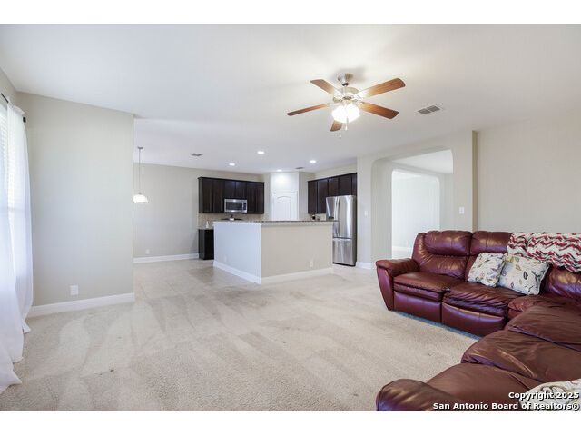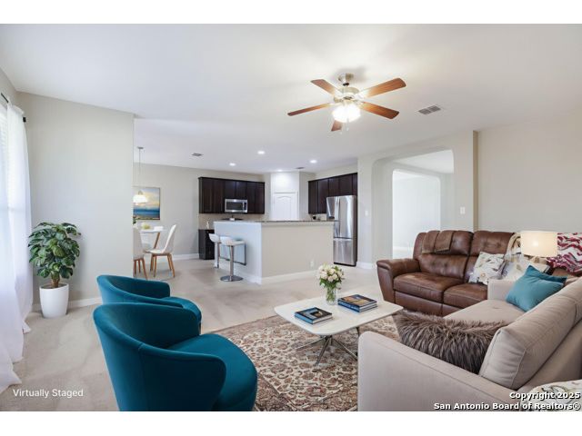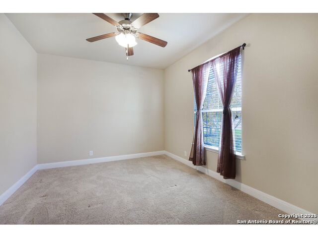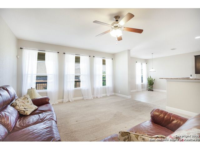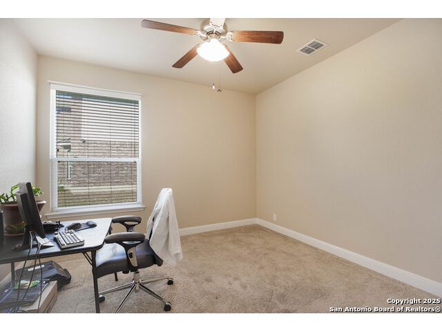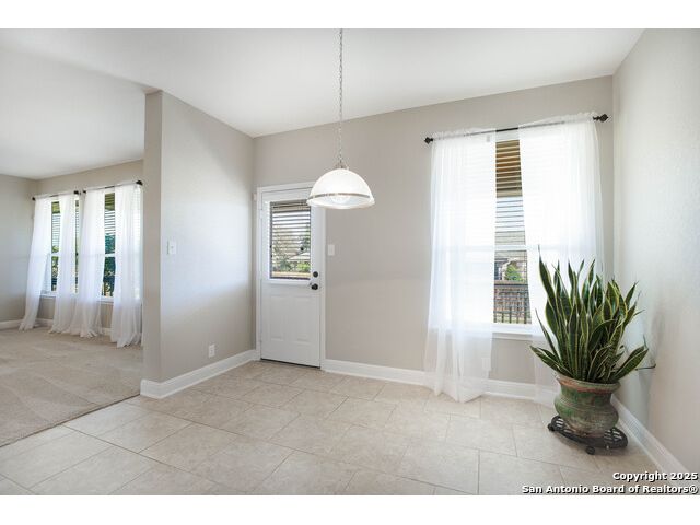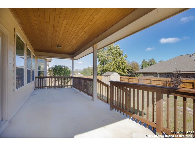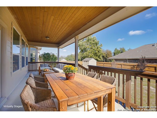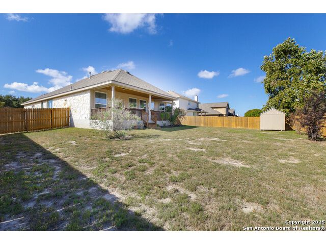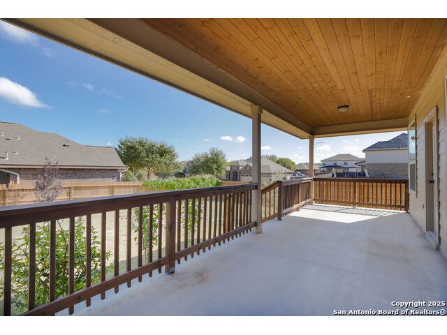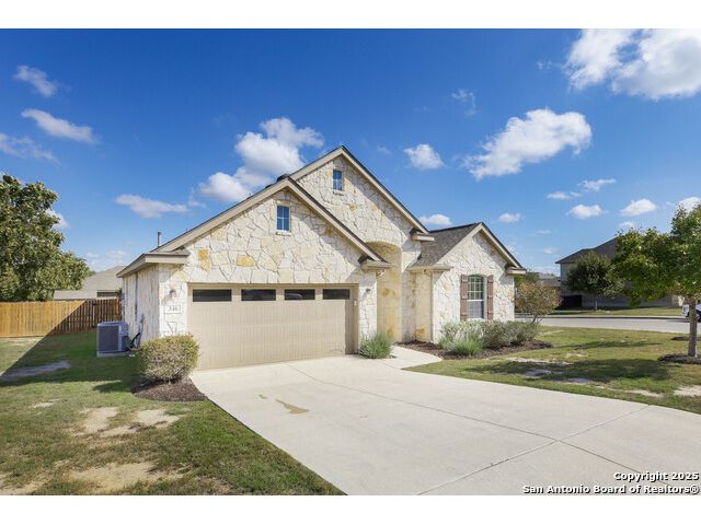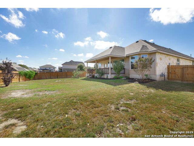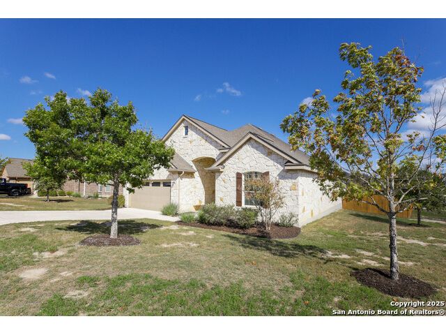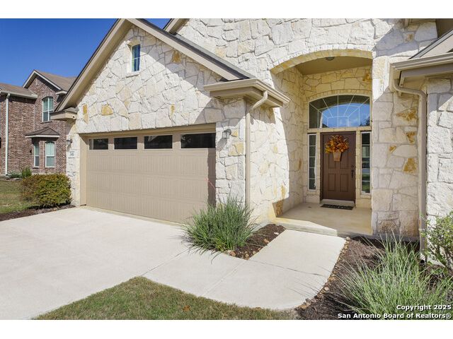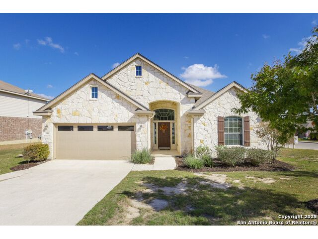 Welcome to 346 Redbird Song-an inviting former model home set on a generous .296-acre corner lot, filled with thoughtful upgrades and a layout designed for comfort. Step inside and you're greeted by tall baseboards, refined detailing, and an open, airy flow. Just to your left, a private office offers an ideal work-from-home retreat-or easily converts into a fourth bedroom if needed. Continue forward and the home opens into two welcoming dining spaces, including a charming breakfast area highlighted by a beautiful bay window overlooking the backyard. The kitchen features upgraded countertops, abundant storage, and a Bosch dishwasher added in 2020-perfect for both everyday living and entertaining. The living spaces guide you toward the expansive back patio, where wood detailing on the ceiling adds a warm, custom touch. It's an inviting outdoor retreat suited for morning coffee or evening gatherings. The bedroom layout offers excellent separation: the secondary bedrooms are set apart in their own hallway for privacy, while the primary suite rests on the opposite side of the home, creating a peaceful owner's escape. Two well-appointed bathrooms round out the interior. Even the garage reflects its former model-home status, with upgraded windows in the garage doors and generous storage options. Major updates ensure peace of mind, including a new roof (2021), new fence (2021), interior paint (2020), exterior paint (2024), and a garage door opener replaced in 2023. Located just minutes from H-E-B, restaurants, and everyday conveniences, this home effortlessly blends style, craftsmanship, and practicality.