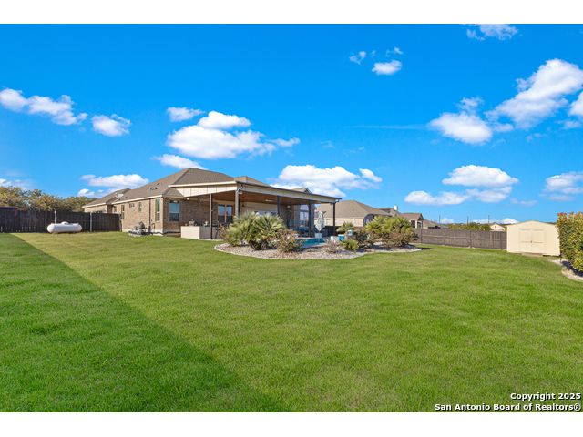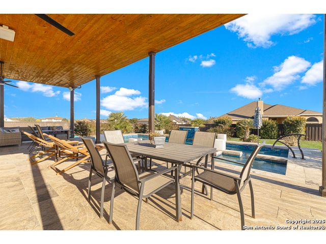 This exceptional 5-bedroom home with a private study features a spacious open floorplan, premium ceramic flooring in key areas, soaring ceilings, and designer touches throughout. The gourmet kitchen flows seamlessly into the living spaces, making it perfect for both everyday living and entertaining. Step outside to a resort-style backyard oasis with a custom heated pool, oversized spa, multiple lounge areas, and a full outdoor kitchen designed for year-round enjoyment. Additional highlights include a 3-car garage with epoxy flooring and an oversized stained driveway that adds impressive curb appeal. A truly standout home offering unmatched indoor-outdoor living and one of the most unique backyards in the neighborhood.