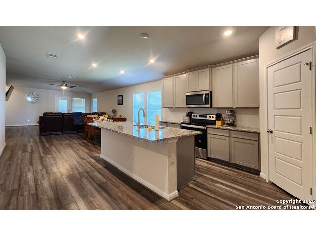 Charming home - gently lived-in ready and for immediate occupancy. Military servicemember? This home is fairly close to Brooke Army Med Center and makes for a relatively short ride to that facility:) Have small children? This home is perfect for you!! Located on a cul-de-sac for reduced traffic exposure - also this home has no next-door neighbors as a large, open field borders the property. This floorplan greets you with an open concept design. Generous sized master suite welcomes you for a restful night. Additional room could be Office/Study/Hobby room - YOU decide :) Make it yours! Builder says 1966sf, 1975sf per BCAD