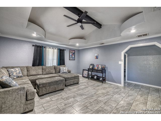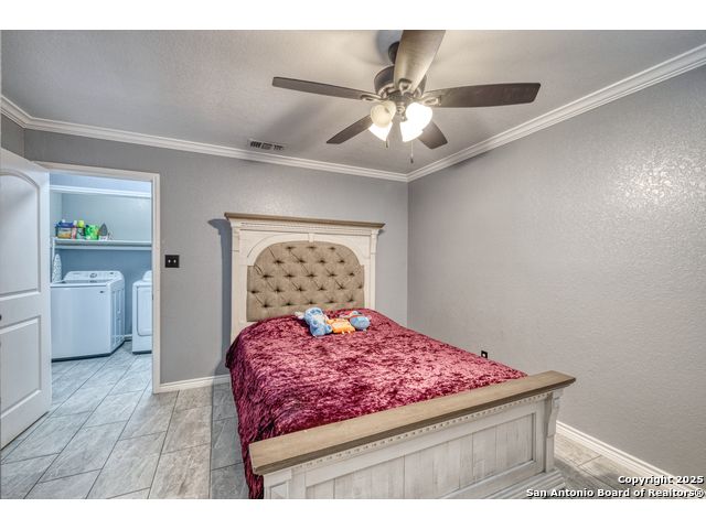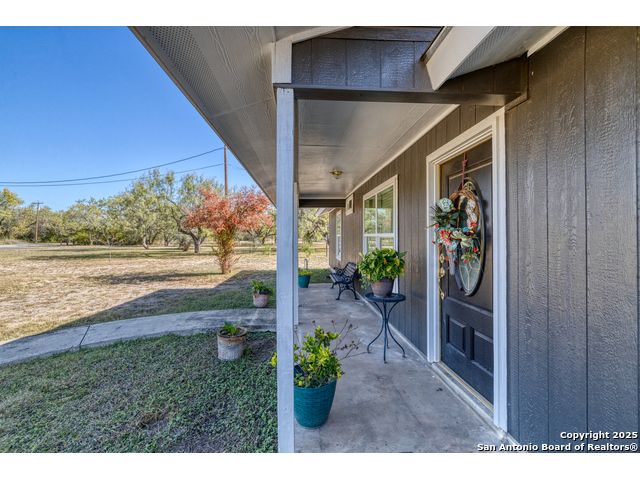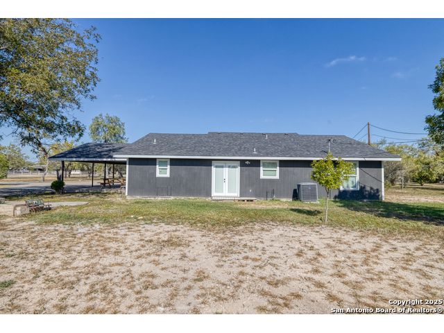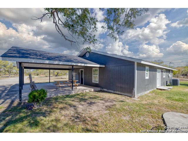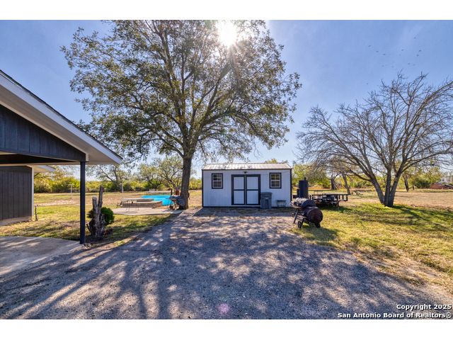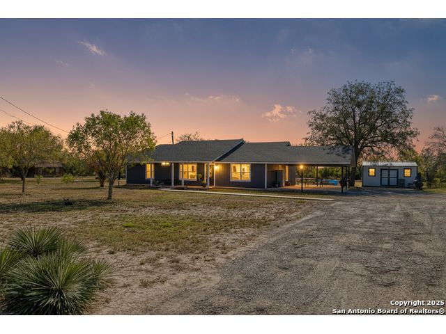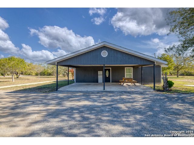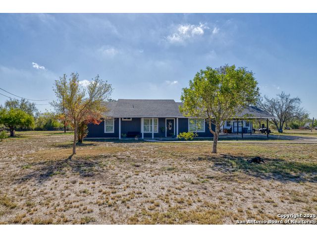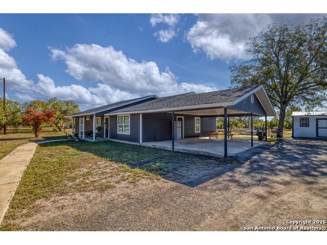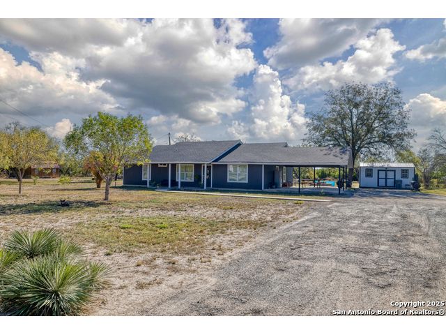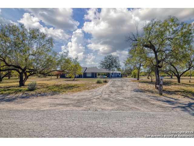 1459 Westward Trail is a renovated four-bedroom, two-bathroom home on 3.784 unrestricted acres in Uvalde Estates, offering a peaceful country setting less than five miles from Uvalde city center for convenient access to shopping, dining, schools, and healthcare. Built in 2002 and updated throughout the past two years, the home features just over 2,000 square feet of living space with a new roof, windows, doors, paint, flooring, faucets, fixtures, and a brand-new septic system, with water supplied by Windmill Water Supply Co-Op. The interior includes ceramic tile flooring, fresh trim, a dedicated master suite with a large closet and private bathroom, a formal dining area with a vaulted ceiling and crown molding, and a spacious kitchen with a breakfast nook, ample cabinetry, plenty of counter space, and a gas stove. Three remodeled guest bedrooms, an updated second bathroom with a tub-shower combination and new vanity, and a well-planned laundry area with additional storage complete the layout. The property includes two storage buildings, an attached two-car carport, a long driveway for ample parking, and several mature trees. Only about one-third of the acreage is cleared for the homesite, leaving over two acres of native brush behind the home ideal for additional construction, a home business, or commercial use thanks to the unrestricted land.