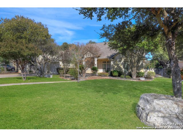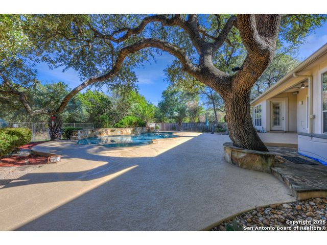 Open house Sunday 12/7/2025 from noon - 2! Discover luxury, privacy, and everyday comfort in this beautifully appointed single-story 4-bedroom home (with one bedroom currently used as an office/den) situated in the highly desirable gated community Sonoma Ranch. Set on an expansive 0.4+ acre greenbelt lot, this property offers peaceful views, multiple patios, and a sparkling swimming pool surrounded by mature trees-your own private retreat. Inside, the open, light-filled layout showcases a thoughtfully updated kitchen featuring a gas cooktop, built-in oven and microwave, miles of granite countertops, a generous breakfast bar, wine refrigerator, and a walk-in pantry. Plus a pocket office for work or planning. The spacious primary suite features beautiful wood floors and private outdoor access, creating a warm and inviting retreat. The adjoining spa-like bath includes dual vanities, a jetted soaking tub, a large walk-in shower, and a shopaholic-sized closet designed for exceptional organization. Car enthusiasts and hobbyists will appreciate the oversized 3-car tandem garage with high ceilings and 5-panel garage doors-perfect for taller vehicles, oversized equipment, or a workshop setup. Sprinkler system and plumbed for water softener. With quick access to Loop 1604, I-10, UTSA, Valero, Medtronic, La Cantera, The Rim, the Medical Center, shopping, grocery stores, and highly regarded NISD schools, this home offers the ultimate blend of convenience and upscale living. A rare combination of space, style, and setting-come see why this one stands out from the rest!