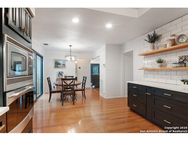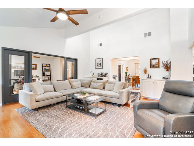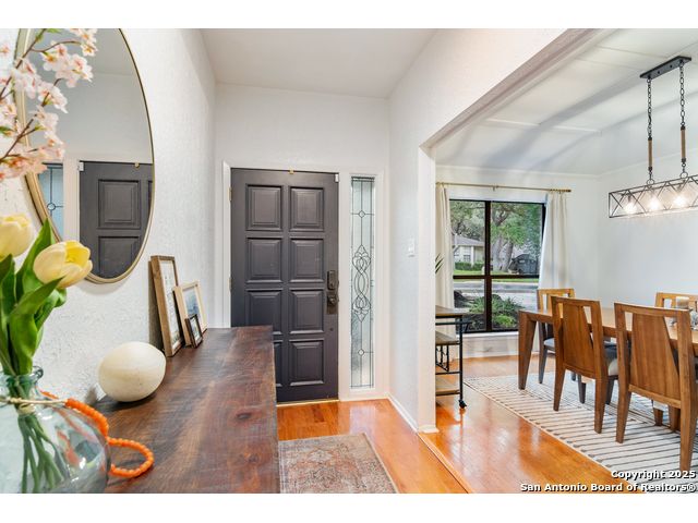 Beautifully Updated One-Story Home in Hidden Forest Discover this inviting 4-bedroom, 2.5-bath single-story home in the highly desirable Hidden Forest neighborhood. This thoughtfully updated residence features an open layout with high vaulted ceilings and rich hardwood flooring throughout. The modern kitchen offers updated finishes, ample storage, and overlooks a charming atrium that fills the home with natural light. Entertain with ease in the spacious dining room and living area complete with a wet bar and beverage refrigerator. A bonus room provides the perfect flexible space for a large home office, playroom, or media area. Enjoy outdoor living in the expansive backyard, ideal for gatherings, gardening, or simply relaxing in a private setting. This move-in-ready home combines modern updates, timeless style, and a fantastic location-just minutes from local amenities, parks, and top-rated schools.