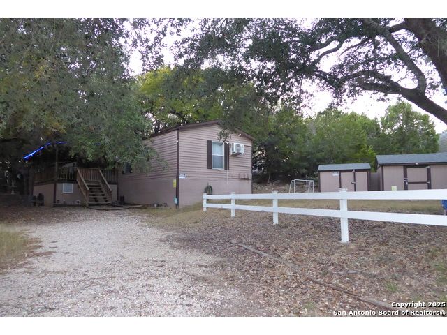 This peaceful lake house retreat is perfect for full-time lake living, a weekend retreat, or your next Airbnb investment! It perfectly combines modern comfort with timeless charm. Inside, the open floor plan feels warm and functional, with fresh paint, laminate floors, and a roomy living area ideal for both relaxing and entertaining. The main house offers plenty of space for gatherings and overnight guests, while the extra cabin just beyond the back patio can accommodate up to six more people. Outside, the spacious exterior features of a wooded double lot provide a tranquil escape perfect for unwinding in the peaceful surroundings watching sunsets and observing wildlife. Double lot has plenty of space for your recreational toys, boats, RV or just additional parking space. 3 additional storage sheds convey. Conveniently located just a few steps to the community pool and park/playground. Minutes from Canyon Lake's parks and boat ramps, this home provides easy access to Canyon Lake's abundant recreational opportunities. Whether you're seeking the tranquility of lake living or looking for an income producing investment property. This house has it all!**WANT MORE INVESTMENTS OR SPACE??LISTING #1923420 BACKING UP TO THIS PROPERTY BELONGS TO SAME OWNER**
