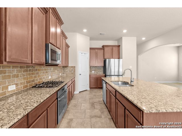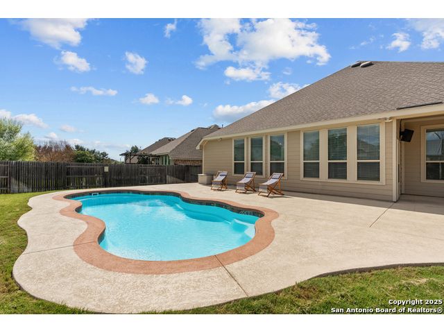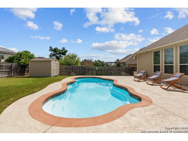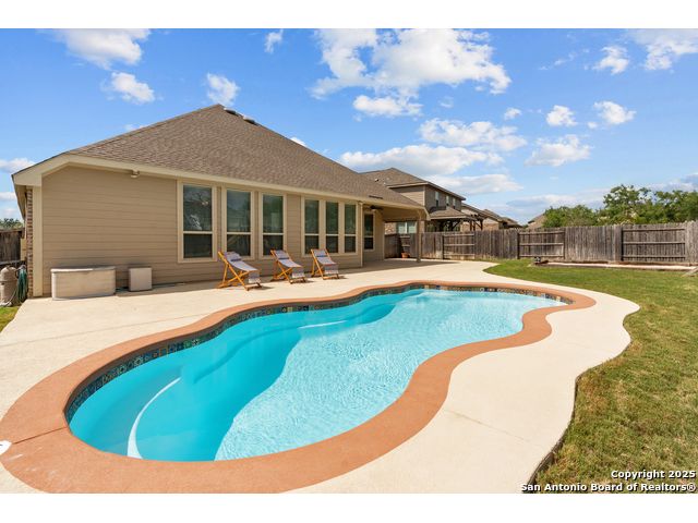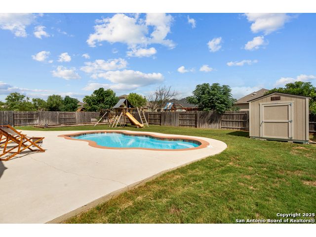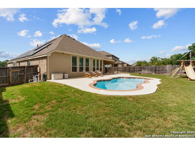 **Up to $5k in concessions available** Encompassing the perfect blend of relaxation, energy-efficiency and practicality, this spacious home nestled on a generous .23-acre lot with a sparkling pool provides it all. As you enter, you're immediately captivated by the high ceilings, natural light and an airy open floor plan. The kitchen is a chef's dream boasting granite counter tops, SS appliances, gas cooking and tons of cabinet & counter top space. Offering 4 bedrooms, 2.5 bathrooms and an office/study, the master suite with dual closets and walk-in shower, creates the ideal retreat. Escape to your private backyard oasis, where you'll find a 14' x 30' Laguna pool, extended patio slab, playground set, bocce ball court & storage shed, making it the perfect outdoor living space. Last but surely not least, benefit greatly from the solar panels, double pane windows, tank-less water heater & Nest thermostat, providing energy-efficiency that's second to none, which makes this home "THE ONE" that is not to be missed!
