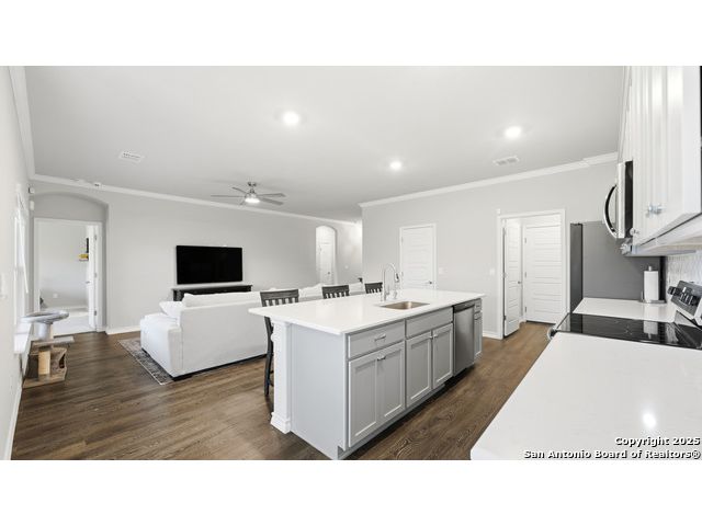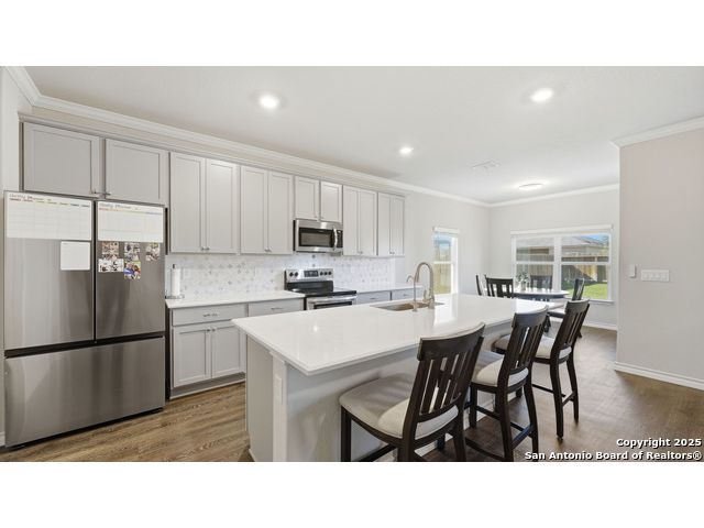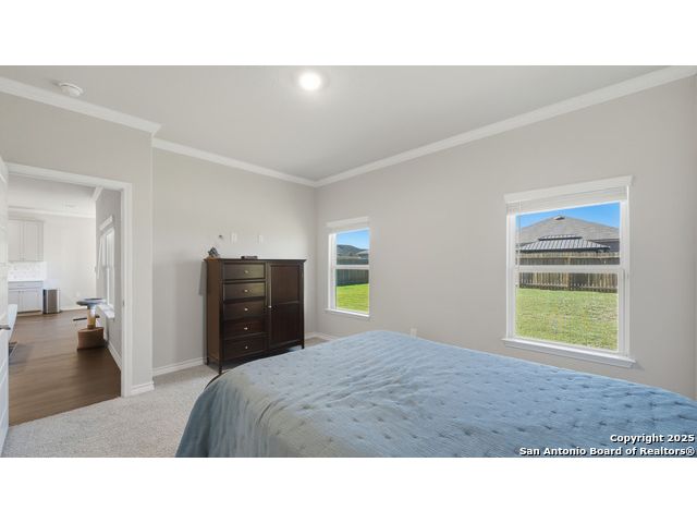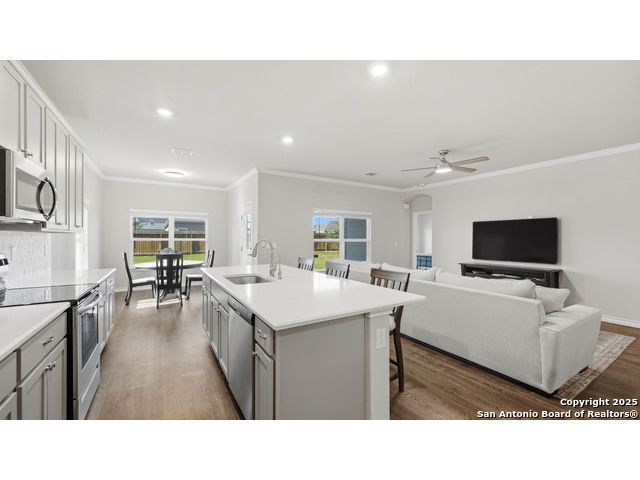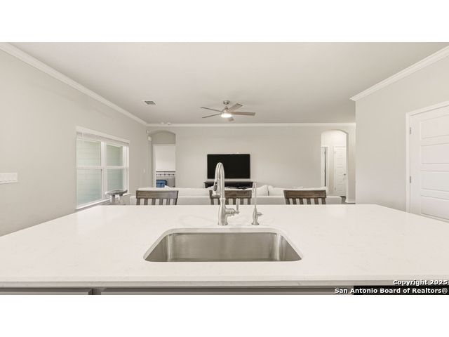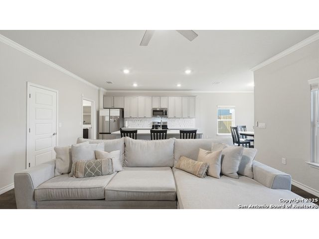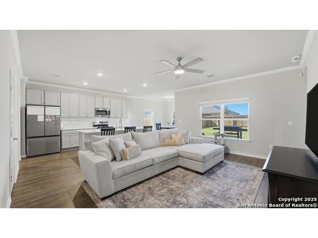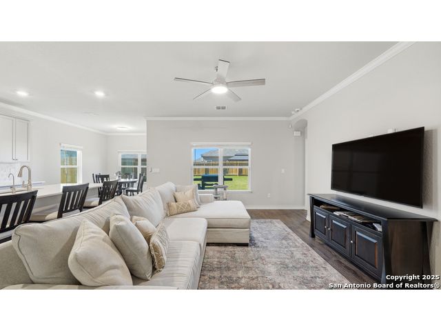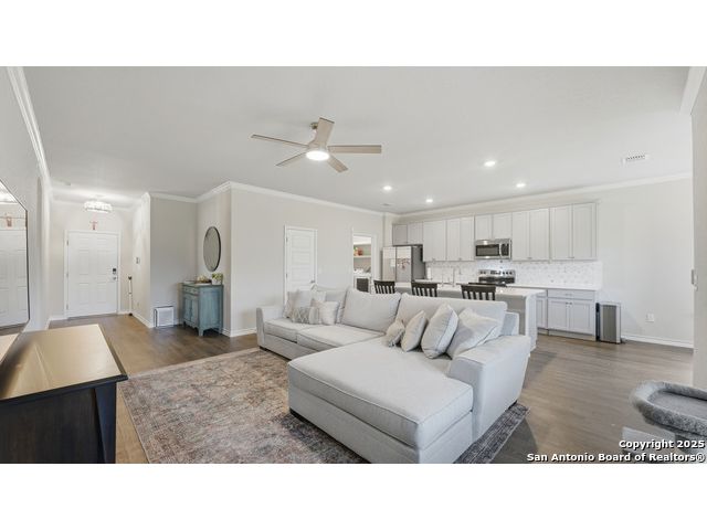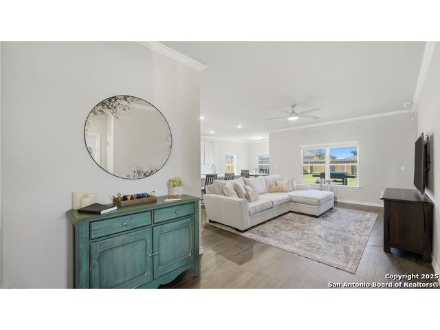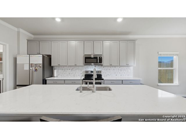 Beautiful Corner-Lot Home in Legend Pond! This stunning 3-bedroom, 2-bath home in New Braunfels offers an inviting open-concept floor plan with a bright and modern kitchen featuring shaker-style cabinets, stainless steel appliances, and a spacious island perfect for entertaining. The primary suite includes a private bath and walk-in closet. Enjoy outdoor living on the large corner lot and take advantage of community amenities like the neighborhood pool and nearby walking trails. Conveniently located just minutes from the new New Braunfels Sports Complex, shopping, and dining. Move-in ready and full of charm - this one won't last long! Upgrades done on home include: - Built in butler's pantry, coffee bar, full wall tile backsplash, under cabinet lighting, granite counter tops. - Ceiling fans living room, front bedroom - Updated base boards 3 1/4" - crown molding living room, dinning, kitchen, entry, master bedroom - Kitchen backsplash, Quartz countertops beveled edged - Bath 2 vanity quartz countertop - Water softener and water filtration - Wood shelving all bedrooms, closets, linen, coat closet laundry room. - lighting in all closets - All plumbing fixtures changed out, baths, kitchen, master bath rain head shower added. - Master bath vanity upgraded from single added additional cabinets for storage - cabinets in garage, built in mud bench / shoe storage. - Added dedicated freezer fridge in garage.