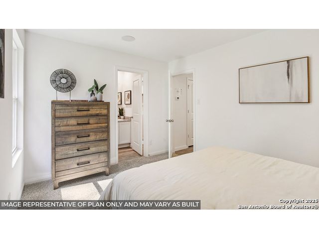 The Hannah, located in the sought-after Sonora community in San Antonio, TX, combines modern design with quality craftsmanship. This new construction, one-story home offers 2 bedrooms, 2 bathrooms, and 813 square feet of living space, with two all-siding exterior options and a spacious driveway, providing an inviting and practical space instead of a traditional garage. The open concept layout creates a seamless flow between the living room, kitchen, and dining areas, making it perfect for both everyday living and entertaining. The kitchen is equipped with stunning quartz countertops, stainless steel appliances, and stylish shaker-style cabinets, offering both functionality and a sleek, modern design. The main bedroom is a serene retreat, featuring soft, high-quality carpet flooring, a generous walk-in closet, and an ensuite bathroom with quartz countertops and a combined shower and bathtub. Additionally, all bathrooms in the home are outfitted with quartz countertops, ensuring both elegance and durability. The home is built with high-quality James Hardie exterior products, known for their durability and long-lasting performance, ensuring that The Hannah is not only beautiful but built to last. Hard surface flooring is featured in the living room, kitchen, and all wet areas, offering easy maintenance and a modern aesthetic. Patios are also included per plan, adding to the home's appeal and functionality. With these thoughtful features and a prime location, The Hannah is the perfect blend of style, comfort, and practicality in Sonora.