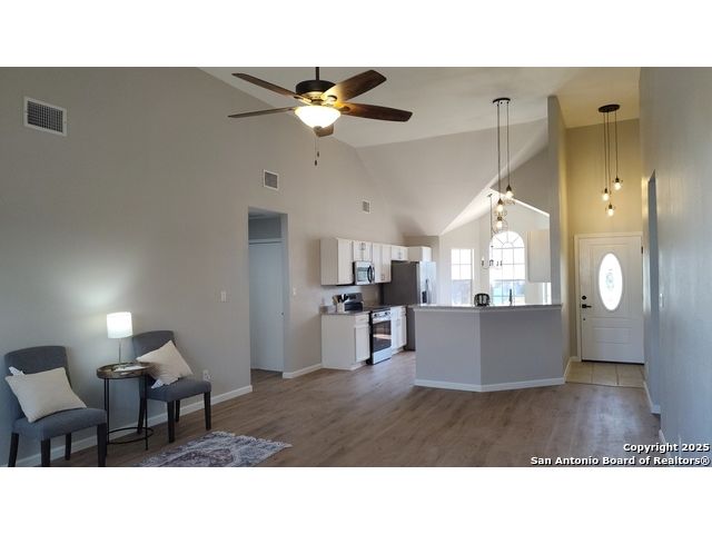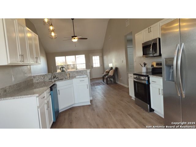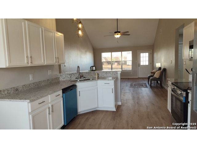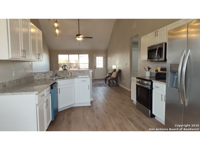 Welcome to your charming sanctuary located in the heart of Jourdanton, TX! This delightful brick home seamlessly blends comfort with style, offering both a peaceful retreat and convenient access to local amenities. Boasting high ceilings that create an open and airy ambiance, this residence provides an abundance of living space designed for relaxation and entertaining. Step inside to discover thoughtfully upgraded interiors, where modern touches meet timeless design. The expansive living areas are perfect for family gatherings or quiet evenings at home. The kitchen stands as a focal point, equipped with contemporary finishes that will inspire your culinary creativity. Brand new stainless steel appliances included to make this home move-in ready! Nestled in a small-town setting brimming with charm and tranquility, you'll enjoy leisurely strolls to the nearby coffee shop and bookstore-perfect for indulging in community vibes or finding your next favorite read. Moreover, essential conveniences such as the hospital and various stores are just a short drive away. Discover a lifestyle of serene comfort in this inviting abode-a true gem that combines small-town charm with accessibility. Your ideal home awaits in Jourdanton; come experience it today!