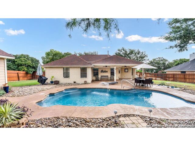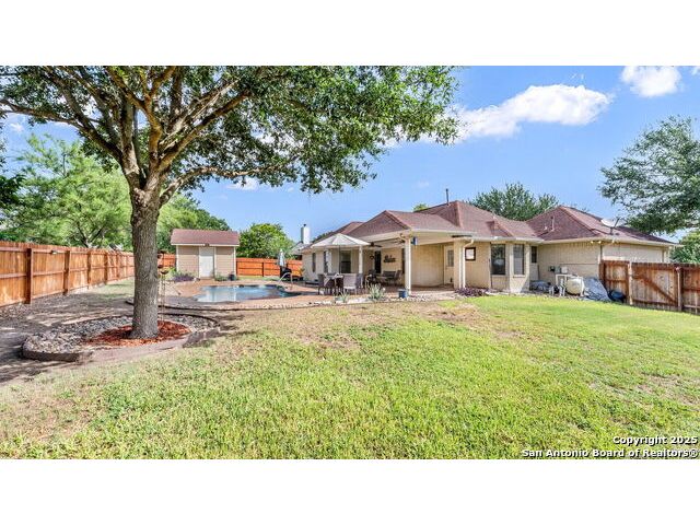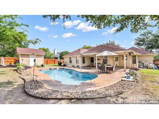 Welcome to this beautifully maintained 3-bedroom, 2-bathroom home nestled in the heart of Castroville, offering the perfect blend of comfort, privacy, and convenience. Situated on a generous 0.30-acre lot, this single-story residence features a bright and open floor plan with a spacious living area, functional kitchen, and a well-sized primary suite, ideal for both everyday living and entertaining. Step outside to your own private retreat. The expansive backyard boasts a sparkling in-ground pool, perfect for cooling off on warm Texas days, as well as a detached casita, ideal for guests, a home office, studio, or additional entertainment space. Mature trees and a well-kept lawn provide shade and beauty, with plenty of room for gardening, outdoor dining, or weekend fun. Additional highlights include a 2-car garage, no HOA restrictions, and a peaceful neighborhood setting. Whether you're hosting guests or enjoying a quiet evening at home, this property is designed to meet your lifestyle needs. Located just minutes from Castroville's historic downtown, local schools, and everyday conveniences, this home is also an easy 30-minute drive to Lackland Air Force Base, downtown San Antonio, and nearby shopping, dining, and major employers, making it a great option for commuters or military families. Don't miss your chance to own this rare gem that offers space, flexibility, and a true sense of Texas charm all in a highly desirable, no-HOA community!