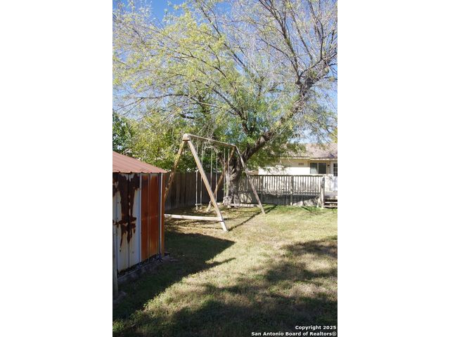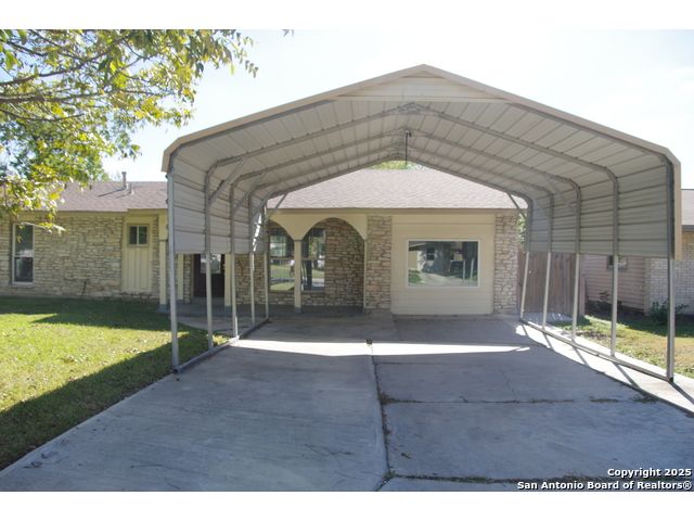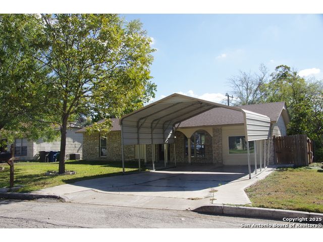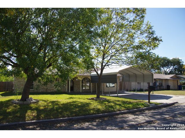 This home will make a great first home for a new family. It is small but very efficient. It has been remodeled with a closed-in one car garage, nicely done for an extra den, bedroom or game room, your decision. Stainless steel appliances. Bathroom with walk-in shower. New carpet in the second and third bedrooms. Two car carport covers the driveway. 16 x 30 ft concrete patio across the back of the house provides plenty of space for family get togethers or just enjoying evenings outdoors. One end of the patio has plumbing installed to add another bathroom if desired, as well as another room. Large back yard with a storage shed and swing set. Mature trees present in front and back. Close to shopping. All measurements are estimated. Verify school district and schools.