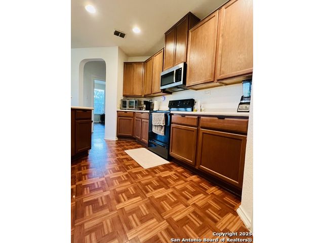 Owner financing available! Solar panels are included-electric bills average just $50 per previous tenant. Welcome to this charming single-story brick home tucked away on a quiet cul-de-sac in Wildhorse Vista. Enjoy added privacy with no immediate neighbor on one side, and a gently sloped roof topped with solar panels. The property is lushly landscaped, with mature greenery offering natural shade and a pleasantly cool atmosphere. The wide driveway fits up to four cars and leads to an attached two car garage. Inside, you'll find three spacious bedrooms and two full bathrooms. The open, airy layout greets you with elegant wall niches, a generously sized living area, and seamless access to the expansive backyard. The well appointed kitchen provides ample storage, abundant countertop space, a range, dishwasher, and more. The primary suite offers a tranquil retreat featuring a double vanity, tub/shower combo, and a roomy walk-in closet. The secondary bedrooms are equally comfortable, and additional storage is thoughtfully located throughout the home. Step outside to a large backyard with a covered patio and a custom-built flagstone walkway-an ideal setup for outdoor entertaining or relaxation. Don't forget to ask how low the utilities can go with the solar panels! Conveniently located near 1604 and La Cantera, this home lies within the sought-after Northside School District. Act fast-this beauty won't last long!