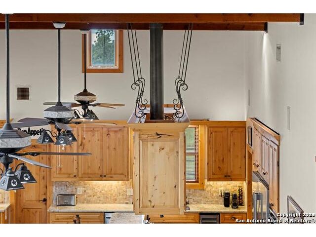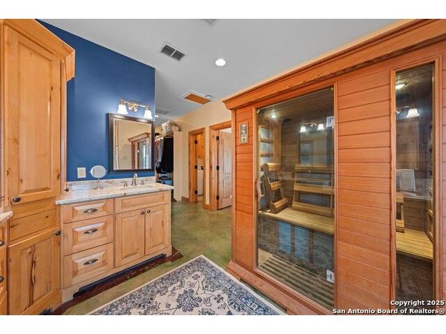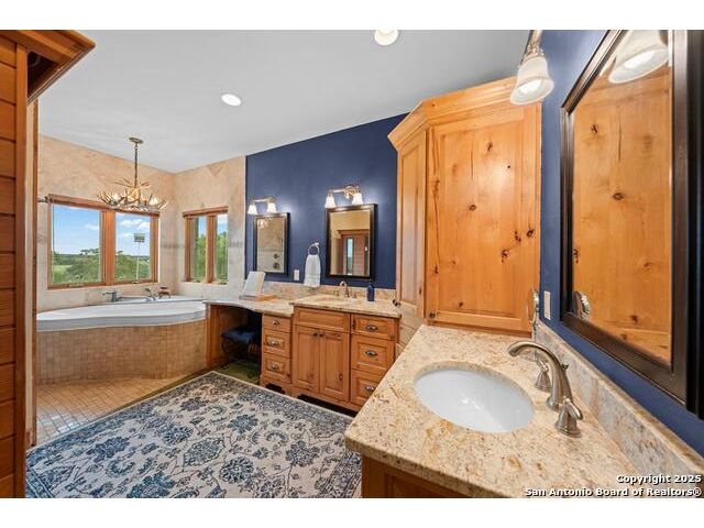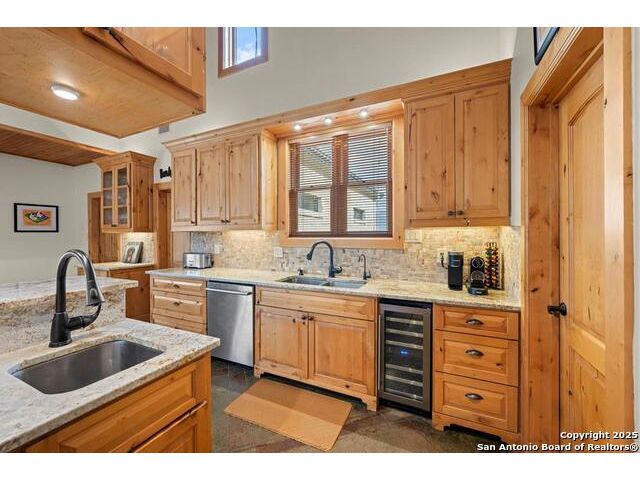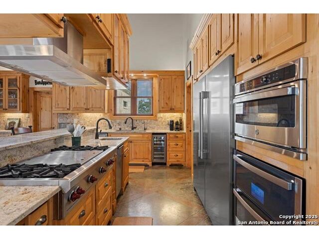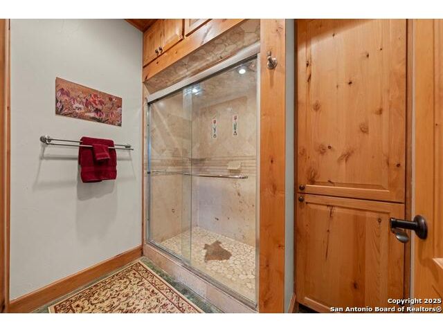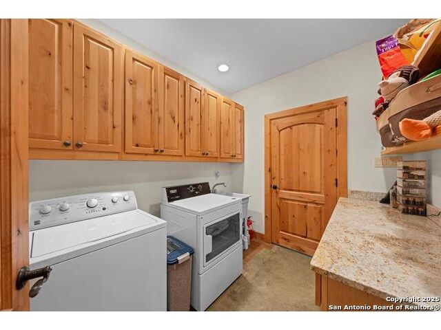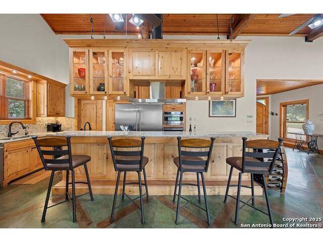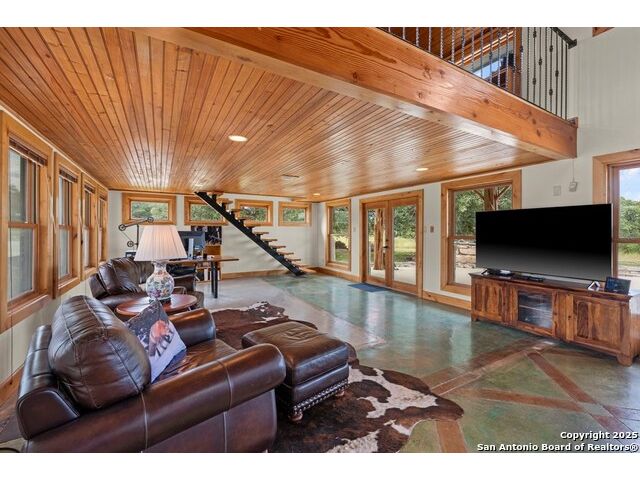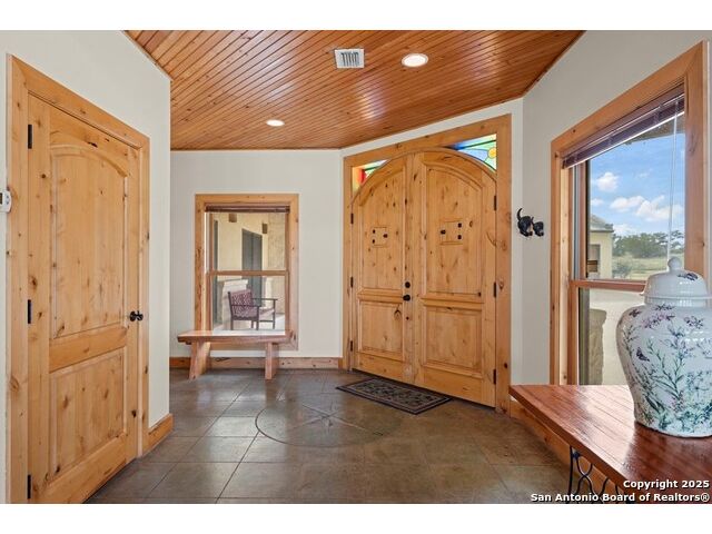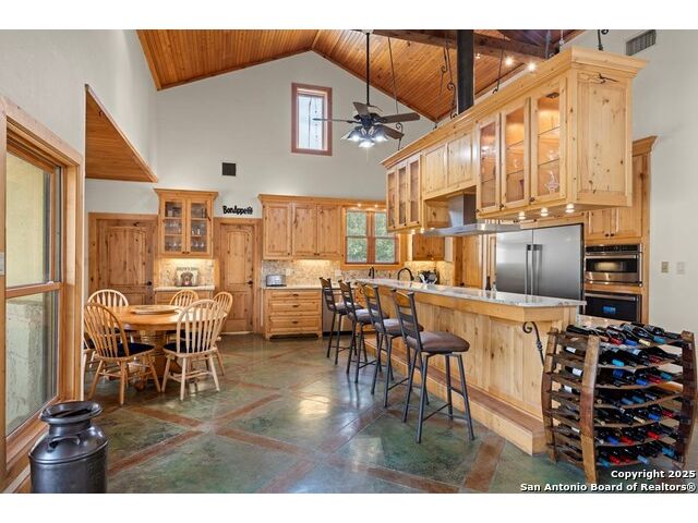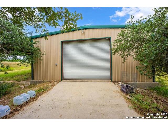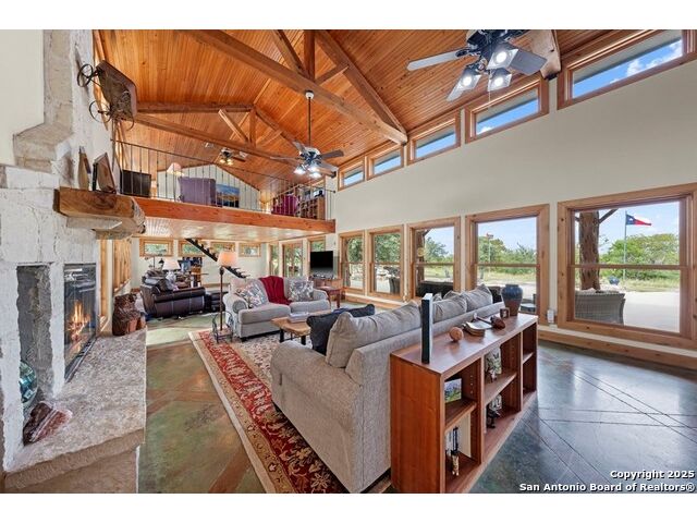 Discover a unique and private retreat nestled on 27.11 acres of pristine, unrestricted, and ag-exempt land. This stunning property offers a rare combination of luxurious living and the untamed beauty of the Texas Hill Country. The residence, set down a winding driveway, allows the surrounding grounds to provide a secluded sanctuary for those seeking tranquility, space, and a connection to nature. Step through the one-of-a-kind custom double front doors into this custom-designed home and be captivated by its bespoke features. The meticulously designed residence includes a great room with a 22-foot ceiling with exposed beams, creating a subtle lodge atmosphere. The open-concept living area is anchored by a magnificent floor-to-ceiling stone fireplace, complete with a custom spalted pecan mantel. A ceramic gas log set adds to the warm and inviting ambiance for gatherings. The heart of the home is a chef's dream, boasting a gourmet kitchen equipped with commercial-grade appliances, ensuring every culinary endeavor is a delight. The home is designed so that you have stunning long-range views from every single window. Wake up to panoramic vistas of rolling hills and watch the vibrant sunrises and sunsets that paint the sky. The seamless integration of the home with its natural surroundings provides a constant sense of peace and wonder. The 27.11 acres are completely fenced and cross fenced with multiple gates offering a secure and private environment. A new, custom main entry gate provides both convenience and peace of mind. The entire property is usable land, making it perfect for a variety of uses, from recreational activities to agricultural pursuits. Nature enthusiasts will be thrilled to know that the land is a haven for exotics, including Axis and white-tail deer, as well as an abundance of turkey and dove and many beautiful songbirds. This creates a unique opportunity for wildlife observation and hunting. The property also includes a 250-gallon propane tank plus a 500-gallon propane tank for added convenience. Beyond the main residence, the property offers exceptional outbuilding(s) designed to accommodate every need. A 31' x 26' detached two-car garage with additional 19'x7' work space provides secure parking, while a spacious 30'x50' insulated metal building with a 25'x50' side awning offers endless possibilities for workshops, storage, or housing a collection of vehicles and equipment. This property is more than a home; it's a lifestyle. With its unparalleled features, stunning views, abundant wildlife, and unrestricted land, this is a rare opportunity to own a true piece of the Texas Hill Country. Don't miss your chance to experience this one-of-a-kind estate.