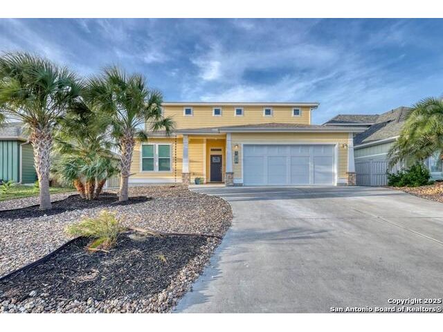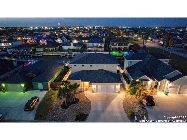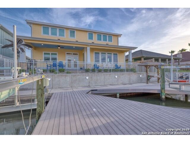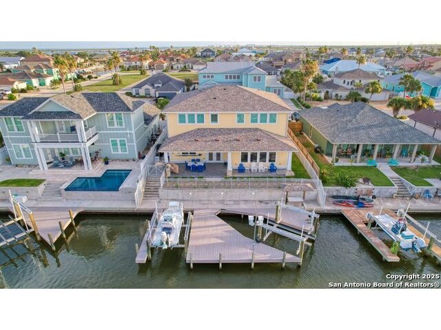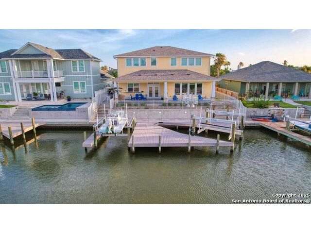 Experience elegance in this 3,338 sq ft waterfront custom home in Pelican Cove, Aransas Pass, Texas. This exquisite residence features 3 bedrooms (potential 4 bedrooms), 2.5 baths, and a large open-concept layout that connects the living, dining, and gourmet kitchen equipped with Thermador appliances, extra icemaker and granite countertops. Enjoy luxury with a Large master suite that includes a Japanese soaking tub, a private media room with wet bar and an indoor elevator. The home is wired for internet and speakers for seamless entertainment. The outdoor oasis boasts two boat lifts, a covered patio, shaded side of house. The finished garage has a mini-split system and tackle rod room, also additional large craft room or office and media room upstairs. Located in a serene neighborhood near Port A beaches and vibrant local amenities, this home offers modern comforts of all upgrades, including a cool water filtration system and energy-efficient windows. Seller contribution is availabe to buyer. Schedule a private tour and experience coastal living at its finest. Come Live Your Beach Life !