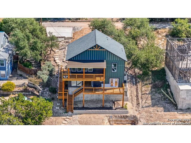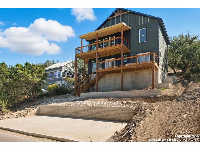 Stunning new-build home just steps from Canyon Lake and the boat ramp! This beautifully designed 3 bedroom, 2.5 bath retreat offers modern Hill Country living with clean finishes, open spaces, and exceptional natural light. The primary suite is conveniently located on the main level and features a luxurious wet room with a frameless glass walk-in shower, soaking tub, and a spacious spa-inspired layout. Enjoy an open-concept kitchen with quartz countertops, custom railing details, and windows positioned to bring the outdoors in. Upstairs offers two private guest rooms and access to multiple decks-perfect for morning coffee, entertaining, or relaxing after a day on the water. With parking in both the front and back for vehicles, trucks, and boats, this home is ideal for short-term rentals, lake-life living, or full-time privacy in the heart of the Texas Hill Country. Don't miss your chance to own this Canyon Lake gem-a new-build beauty that checks every box.