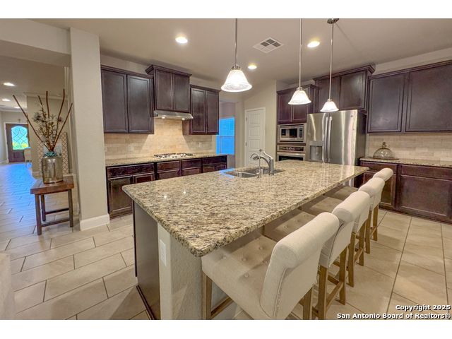 Welcome to your dream home in Singing Hills! This stunning Jeffrey Harrison home features 4 spacious bedrooms and 2.5 baths with thoughtful design and premium finishes throughout. As you step inside, you'll immediately notice the flow and warmth that makes this space so special. Gorgeous ceramic tile stretches throughout the main living areas and wet spaces, creating an elegant yet practical foundation for everyday life. The kitchen invites you in with its gleaming granite countertops, stainless steel appliances, and a gas cooktop perfect for everything from weeknight dinners to holiday feasts. Whether you're working from the quiet study, hosting dinner parties in the formal dining room, or relaxing with family in the open living area, this home adapts beautifully to your lifestyle. The primary bedroom becomes a peaceful sanctuary with its sophisticated tray ceiling and charming bay window that bathes the room in natural light. The spa-inspired ensuite continues that luxurious feeling with a large mud-set walk-in shower featuring seamless glass and elegant dual vanity sinks with granite countertops. Step outside to your covered patio where you can unwind after a long day, grill with friends on the weekend, or simply enjoy your private outdoor space. With an oversized garage that includes a 4-foot bump-out for extra storage, this home offers the perfect blend of style, functionality, and comfort in a desirable Singing Hills location. This is more than a house, it's where your next chapter unfolds. Come see it today!