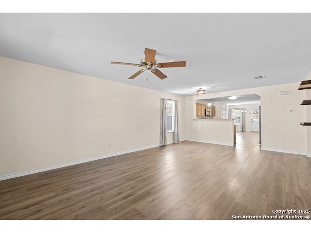 Beautiful home conveniently located near Retama Park, The Forum Shopping Center, major highways, and Northeast Methodist Hospital. Minutes from Randolph AFB and Fort Sam Houston. This open floor plan features an oversized living and dining area, with the kitchen opening to the living space for easy entertaining. The split-bedroom layout offers privacy, and the 4th bedroom with double doors and a closet can be used as an office, guest room, or media room. Enjoy a covered patio overlooking the spacious, fenced backyard-perfect for outdoor gatherings and pets. This home is ready to make your own.