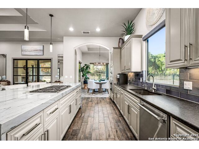 Step into a lifestyle that feels both effortless and extraordinary. This beautifully designed home welcomes you with arched hallways, a dramatic groin-vault ceiling, double metal-and-glass doors, and sun-filled windows that create an inviting, airy flow. Designed for gatherings big and small, the spacious family room opens seamlessly to a true chef-inspired kitchen-complete with a generous island that brings everyone together. The primary retreat offers a peaceful escape, featuring a spacious layout and a walk-in closet that feels like its own private dressing area. Outdoor living becomes part of everyday life with an entry courtyard, a charming side courtyard with a fireplace, and a covered patio complete with another fireplace and an outdoor kitchen-perfect for long evenings spent relaxing or entertaining. A separate casita with its own bath sits just off the entry courtyard, offering privacy and flexibility for guests, multigenerational living, or a dedicated work-from-home space. This is more than a home; it's a place where comfort, connection, and elevated living come together in the best ways. Located within the coveted John Newcombe community. Neighborhood amenities include 13 tennis courts, pickle ball courts, full fitness center, pro-shop, pool complex, and numerous activities for every member.