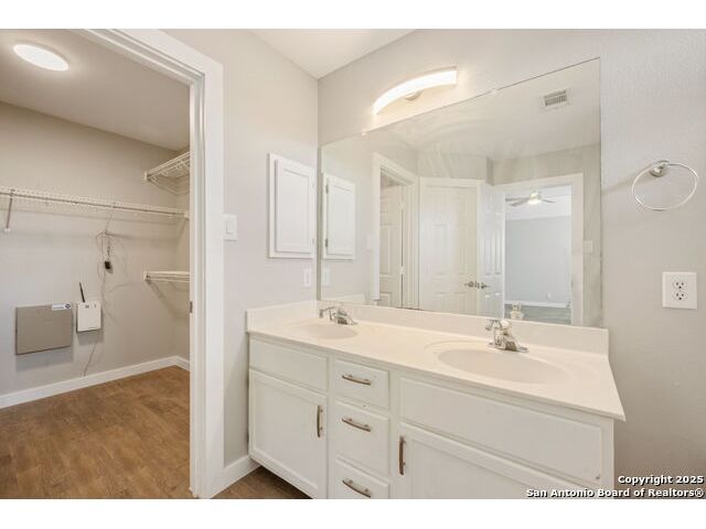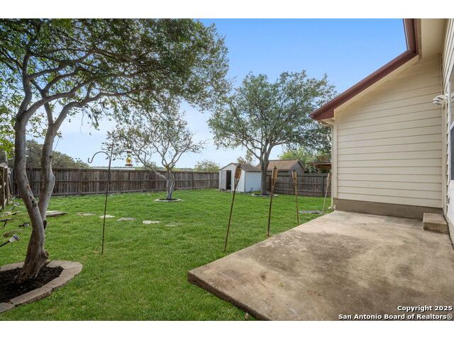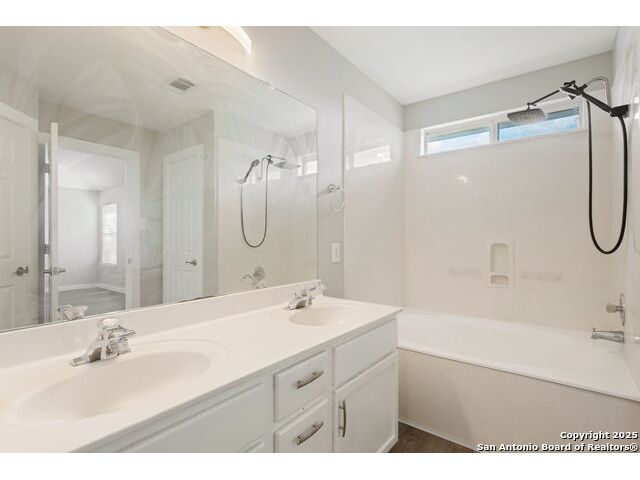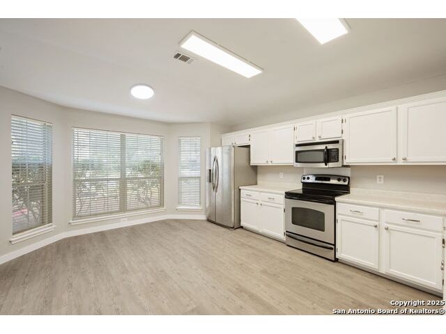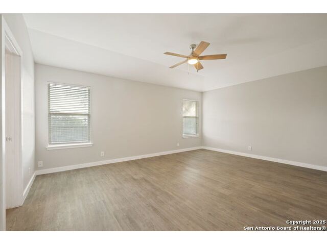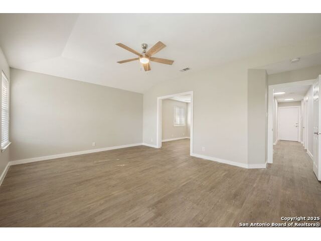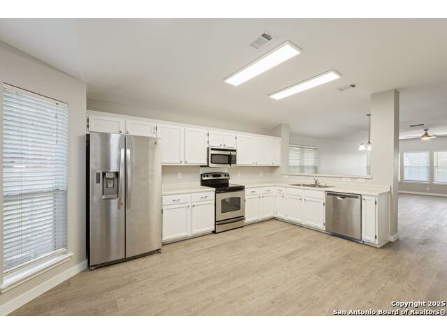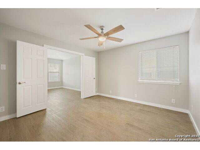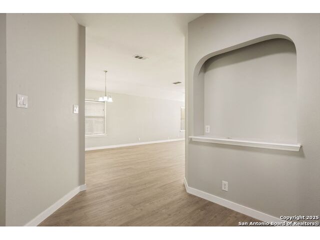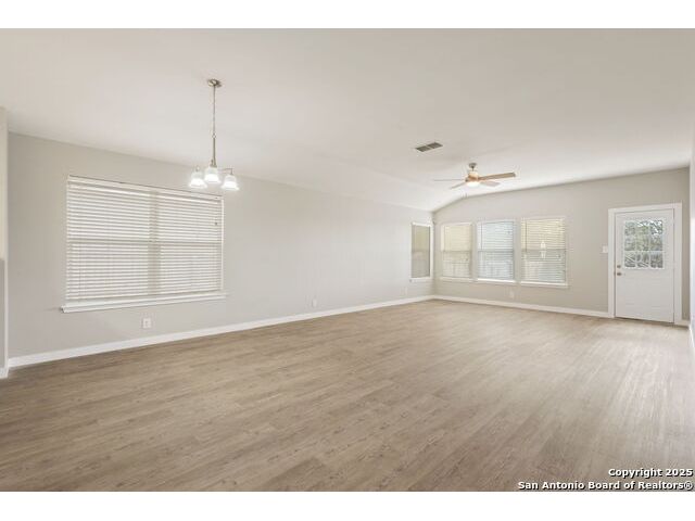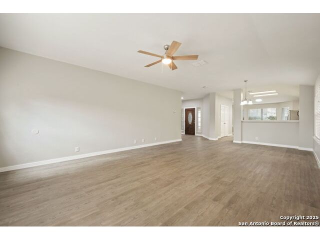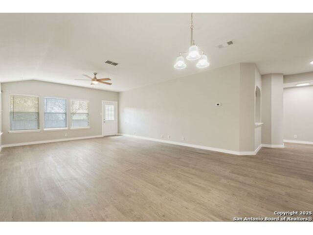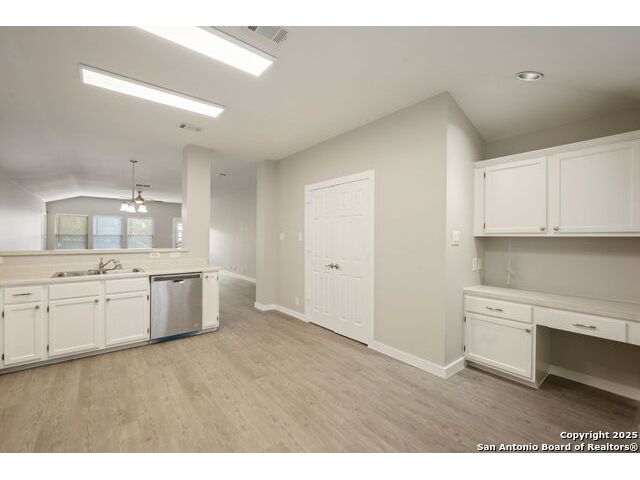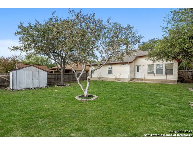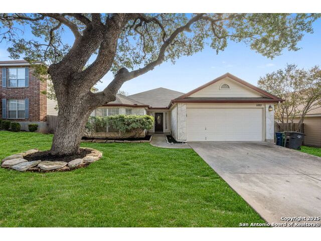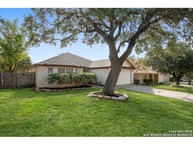Charming one-story home nestled beneath mature trees in both the front and back yards. Recently updated with over $20,000 in renovations, including new flooring, fresh interior paint, upgraded landscaping, and more. The spacious living and dining area features vaulted ceilings and abundant natural light, flowing into an open kitchen with a large pantry and built-in desk. The primary suite offers a garden tub/shower combo with marble surround, double vanity, and walk-in closet. A unique feature: the second bedroom is connected to the primary-perfect for a nursery, office, or sitting area. Move-in ready with timeless appeal and thoughtful details throughout.