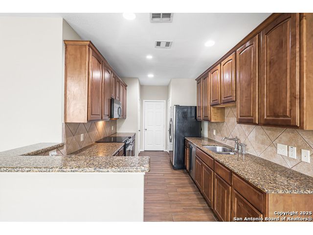 If you've been waiting for a home that just feels good the moment you walk in, this townhome delivers. The fresh paint, the tall ceilings, and the clean, open layout create the kind of space that instantly puts you at ease. The kitchen has granite countertops that give it a sharp, modern look. All the bedrooms are upstairs, giving the home a true sense of separation between daily life and winding down. And the primary bathroom's double shower. Right outside your door, you'll find a friendly, walkable community with its own dog park. And just down the road, the Prue Road Trailhead offers easy access to hiking and getting outdoors. Plus, the Medical Center is only about 15 minutes away, keeping work, errands, and daily life within easy reach. This is a home that stands out for all the right reasons.