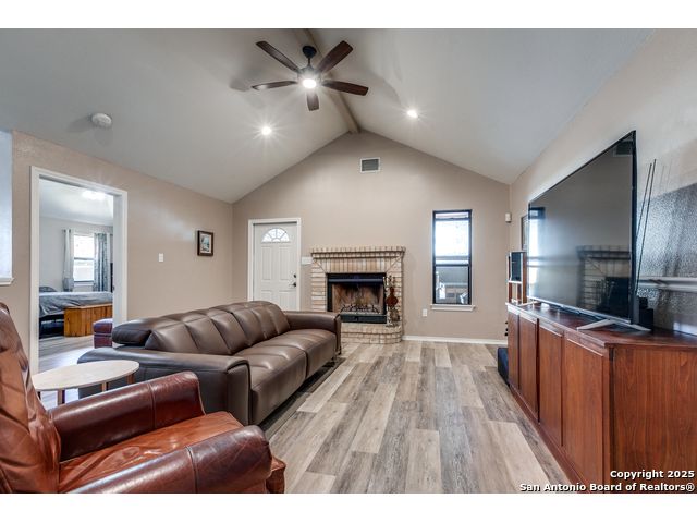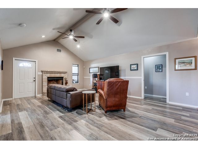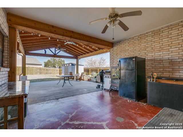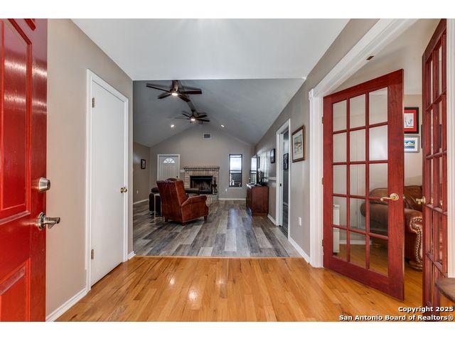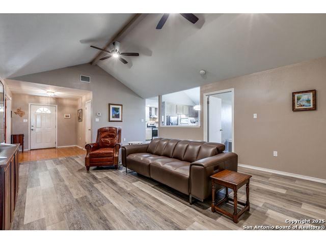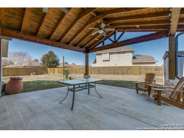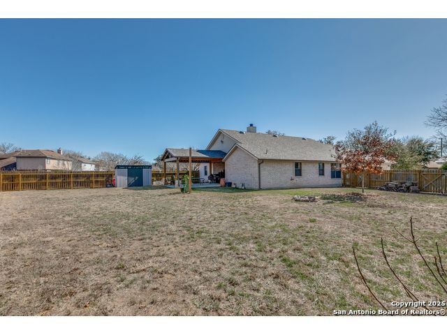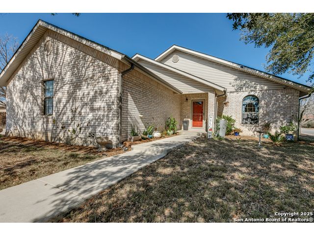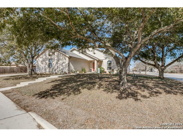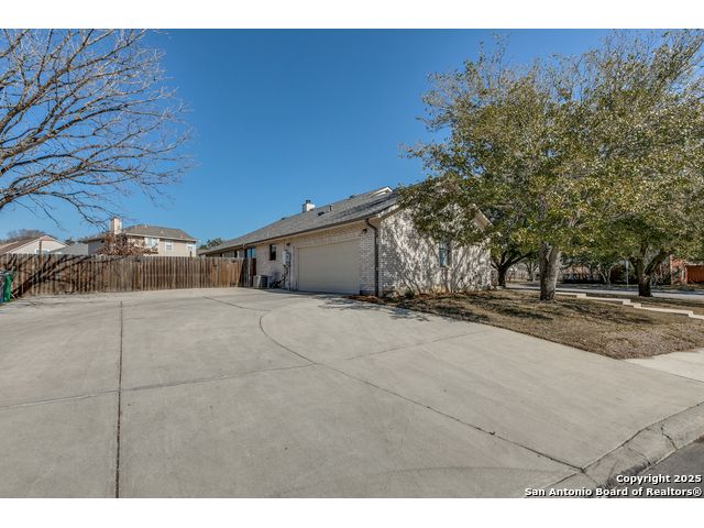 This updated 3-bed home in San Antonio sits on a rare double corner lot with no HOA, RV access, and a huge covered patio-perfect for outdoor living. Inside, you'll find 2 full baths, a flexible study, and vaulted ceilings across a 2,260 sq ft carpet-free layout. The living area offers wood and laminate floors, a fireplace, and separate dining with upgraded lighting. The kitchen includes recessed lighting, vent hood, a California Closet pantry, and a Frigidaire induction range with air fryer. Recent updates: 2024 roof and gutters, 2021 HVAC, new windows in the kitchen and dining, storm door, and low-flow toilets in both baths. A brand-new shed adds even more storage. The side-entry garage and extra driveway space provide easy parking for your boat, trailer, or RV. Located in Crestlake and zoned to East Central ISD, this home is also walking distance to Sinclair Elementary.