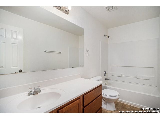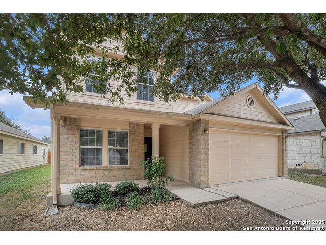 Welcome to this spacious 4-bedroom, 3-bathroom home with over 2,700 sq ft of living space in the desirable Silver Oaks community. The open-concept main floor is perfect for both daily life and entertaining. The dining area flows seamlessly into the living room, which features a cozy fireplace and opens directly to the kitchen and backyard. For ultimate flexibility, a full bedroom and bathroom are located on the ground floor, perfect for guests or a home office. Upstairs, you will find the remaining bedrooms along with a large, versatile flex space ideal as a game room or additional living area. The laundry room is also conveniently located upstairs. The primary suite is a true retreat, boasting vaulted ceilings and a primary bathroom with dual sinks, a standing shower, and a garden tub. Located in the highly-rated Northside ISD, this home is close to shopping, dining, and entertainment, with easy access to Loop 1604, Highway 151, and major employers. Residents of Silver Oaks enjoy community amenities including parks, jogging trails, and a playground. Schedule your showings today!