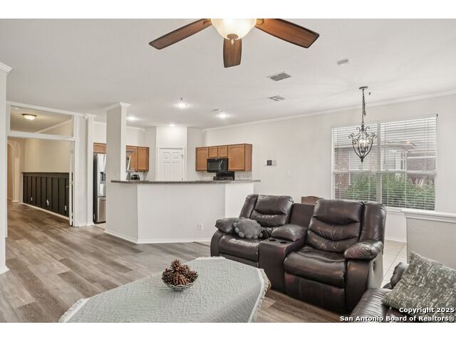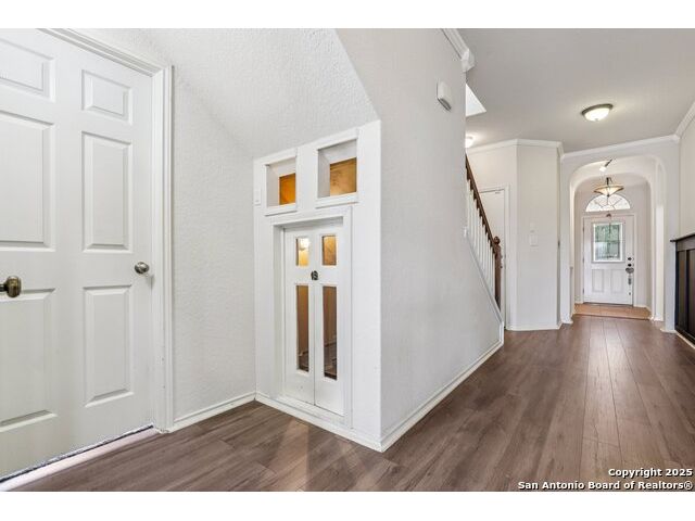 This beautiful 4-bedroom, 2-bath home with an oversized bonus room/Game room located upstairs. It is perfectly situated in a quiet cul-de-sac on a wide lot that backs to a private greenbelt. The open kitchen features recessed lighting, and gas cooking, while the spacious master suite offers double vanities, a stand-up shower, and a relaxing garden tub. All bedrooms are located downstairs for convenience, with an oversized bonus room upstairs ideal for a game room, media space, or home office. A unique pet retreat under stair space. Seller is motivated!