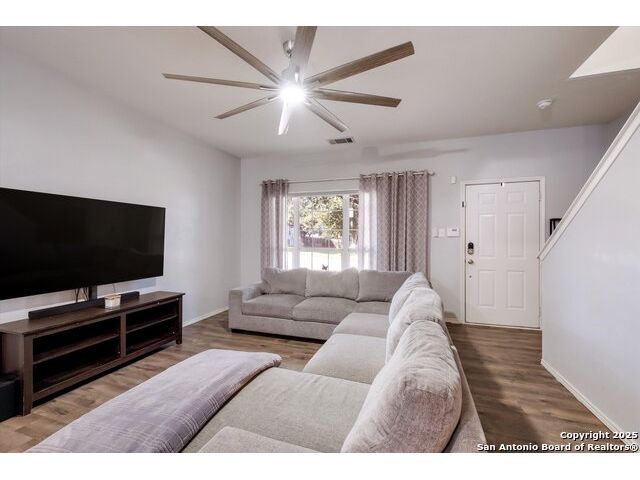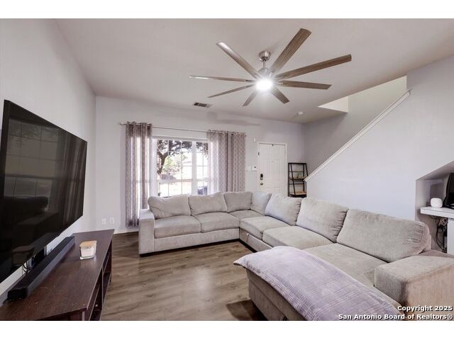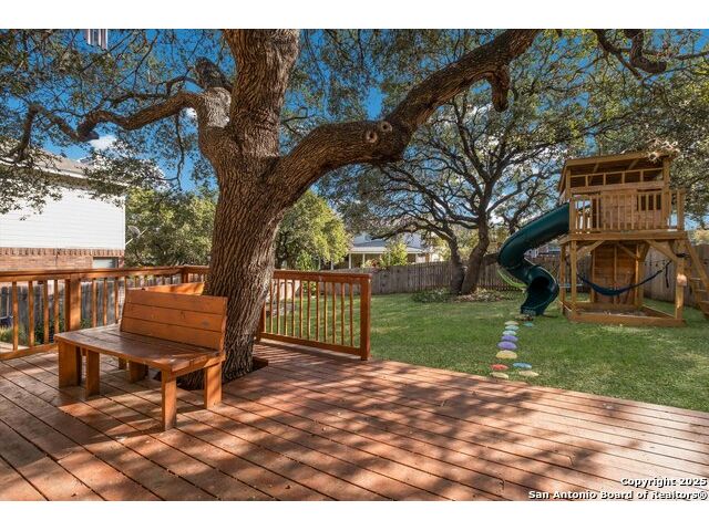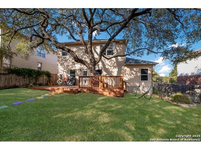 This beautiful two-story home offers 4 bedrooms and 2.5 baths, perfectly situated on a desirable cul-de-sac/corner lot. Filled with natural light, the main level features no carpet and includes a welcoming living room, formal dining room, and a stylish kitchen equipped with stainless steel appliances, quartz countertops, a breakfast bar, and an island, ideal for cooking and entertaining. The upstairs layout provides privacy with the primary bedroom and secondary bedrooms, along with a conveniently located utility room. Enjoy outdoor living on the spacious backyard deck, shaded by a mature tree. A two-car garage adds convenience, while neighborhood amenities, including jogging trails, a sports court, 2 poola, 2 parks, and tennis courts, offer endless recreation for everyone.