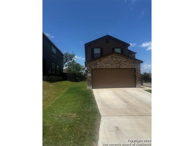 Built in 2020, this spacious two-story home welcomes you with a grand entryway that sets the tone for its open, inviting layout. The downstairs features an open floor plan connecting the kitchen, dining area, and living room. The kitchen offers ample counter space, ideal for meal prep and gatherings. A guest bedroom, full bathroom with a walk-in shower, and laundry room are also located on the first floor. Upstairs, you'll find four generously sized bedrooms, including the primary suite. The primary bathroom features dual vanities and a sizeable walk-in closet for added comfort and function. Ceiling fans are installed in the primary bedroom, guest bedroom, and living room to keep the home cool year-round. Situated on a large corner lot with sprinkler system, this home includes a two-car garage with an automatic door. The home offers quiet neighborhood living just minutes from H-E-B, Walmart, and a variety of dining options.