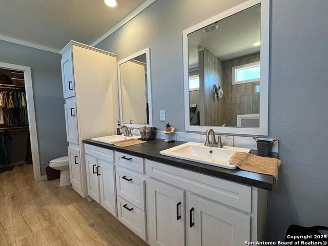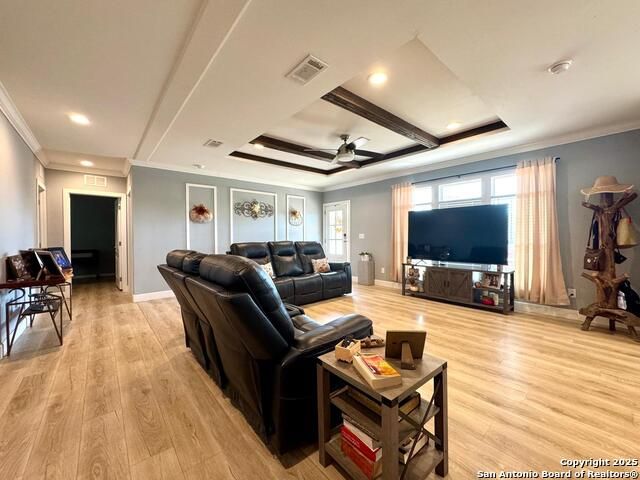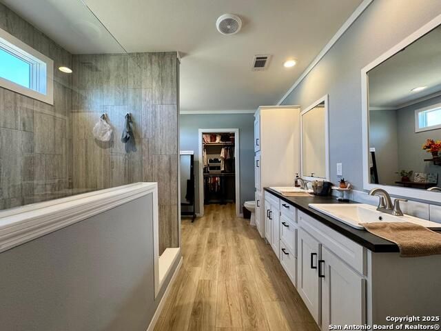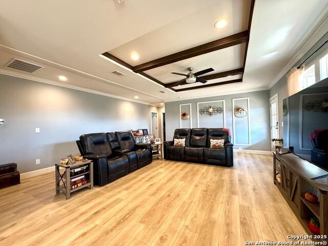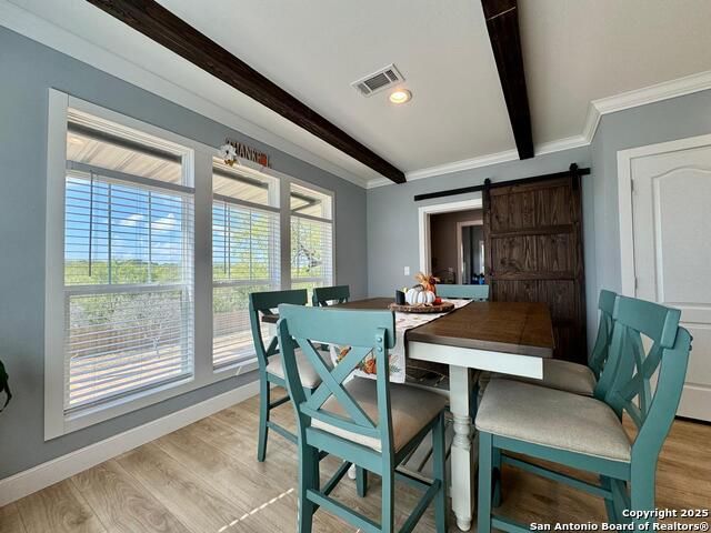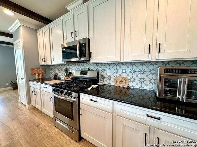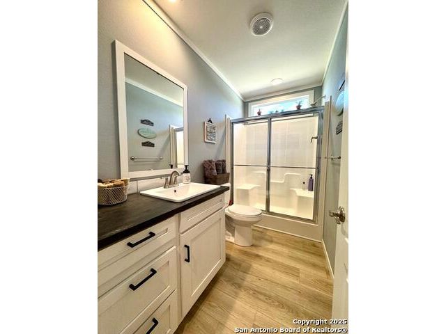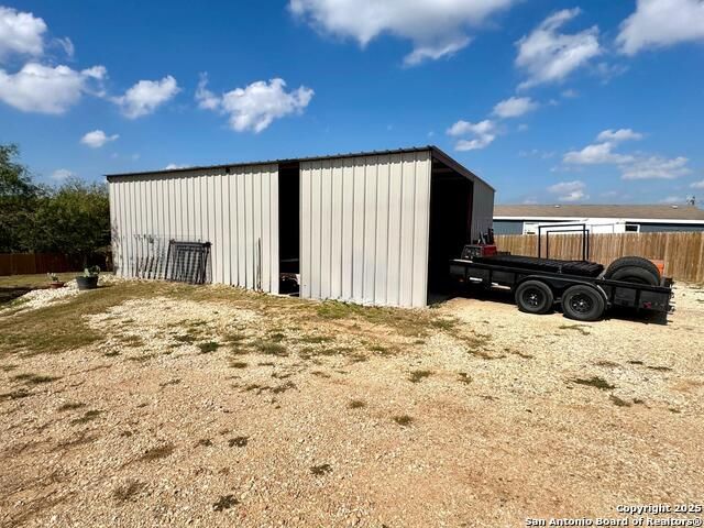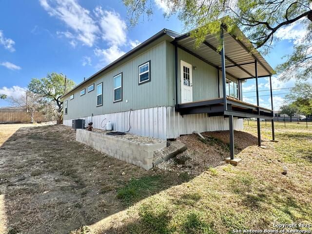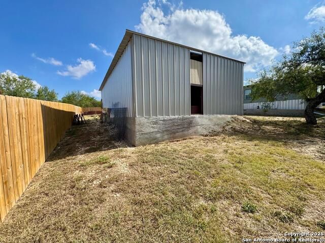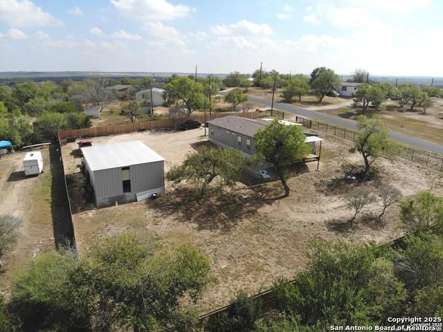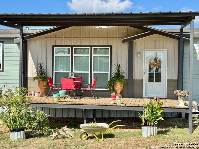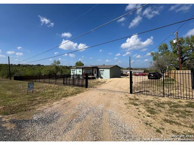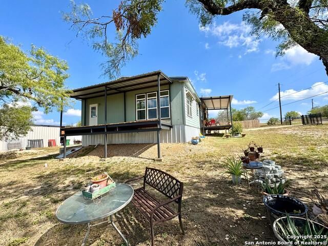 Experience peaceful country living in the highly sought-after Alsatian Heights community of Castroville, one of the most charming and rapidly growing towns in the Hill Country. This immaculate 2023 Clayton Homes 3 bedroom, 2 bath residence offers modern luxury surrounded by wide-open Texas skies. Inside, you'll find an inviting open floor plan with upgraded vinyl flooring throughout, no carpet, as well as elevated finishes such as granite countertops, shaker-style cabinets, a spacious kitchen island, and beautiful wood beams that bring warmth and character to the living room. The oversized primary suite feels like a private retreat, complete with a sitting area, barn doors, and a luxurious bathroom featuring a large walk-in shower with stunning tile, double vanity, and an expansive walk-in closet. The reinforced foundation with concrete piers provides exceptional stability, and both front and side decks are built with steel framing and fully covered, perfect for taking in the beautiful sunrises and sunsets that Castroville is known for. A 25' x 40' metal workshop with electricity offers unbeatable versatility as a garage, storage building, hobby space, or full workshop. The property is fully fenced for privacy, with a metal fence and gate in the front and privacy fencing along the sides and back. With plenty of space for heavy equipment, RVs, boats, trailers, or materials, this property is ideal for anyone who needs room to work, store, or roam. Move-in ready and showing like a model, this home delivers the best of country living while still being close to Castroville's excellent schools, charming downtown, and convenient amenities. Don't miss your chance to own this exceptional slice of Texas countryside!