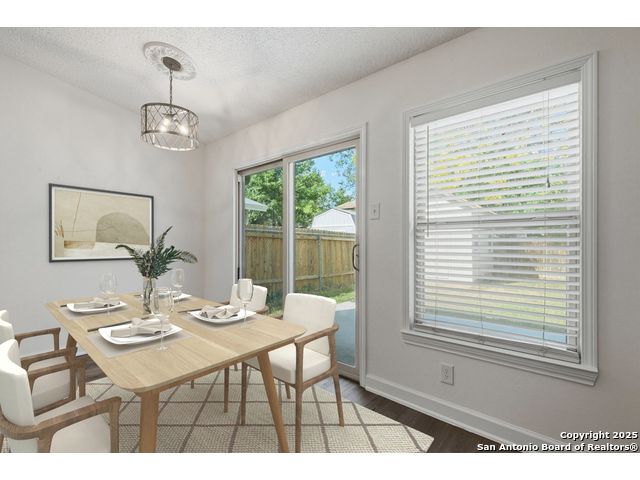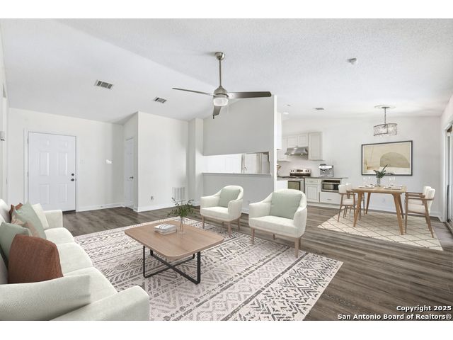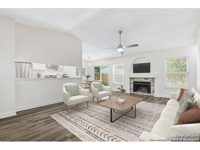 Welcome to this beautifully fully renovated four bedroom single story home in the highly desirable Emerald Valley area, offering a perfect blend of modern updates, comfort, and convenience. The spacious open layout is filled with natural light and showcases all-new flooring, a stunning upgraded kitchen, and beautifully updated bathrooms throughout. The primary suite serves as a true retreat, featuring dual walk-in closets and a refreshed, spa-like bathroom. The living space offers high ceilings and a cozy fireplace for gatherings or a quiet night at home. Step outside to an oversized concrete patio-perfect for outdoor dining, gatherings, or relaxation-along with a storage shed for added convenience. Located in a mature, well-kept community offering fantastic amenities, including pools, a park, and scenic walking trails, this move-in-ready property delivers comfort, style, and an unbeatable location near shopping, dining, and major highways. minutes to Bandera Road, 151, IH10, Loop 410 and Loop 1604. Northside ISD Schools. Open House 11/29 11am-2pm