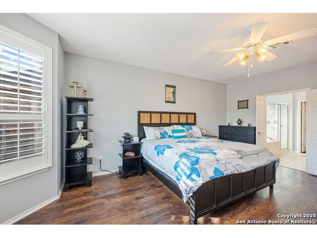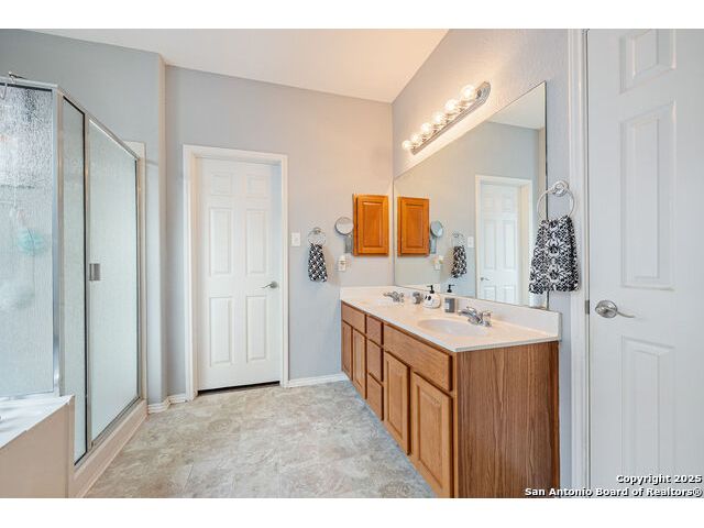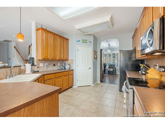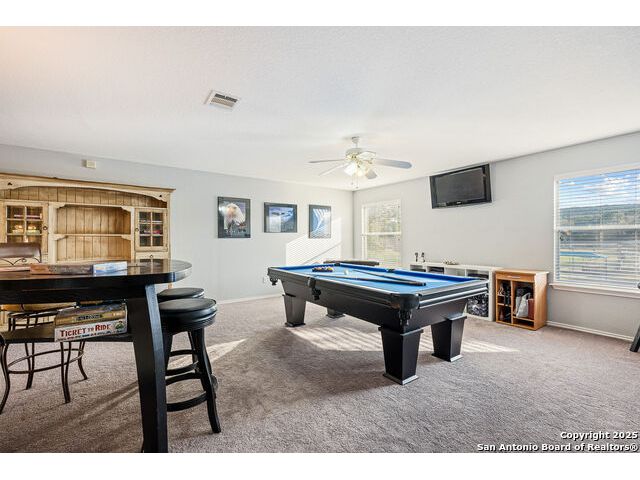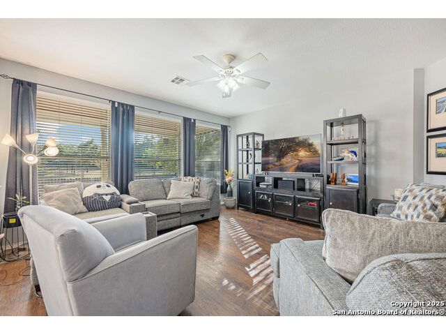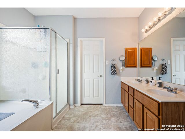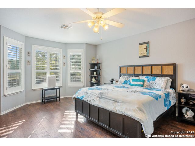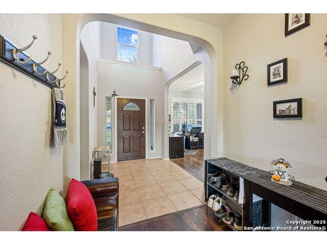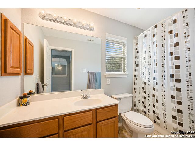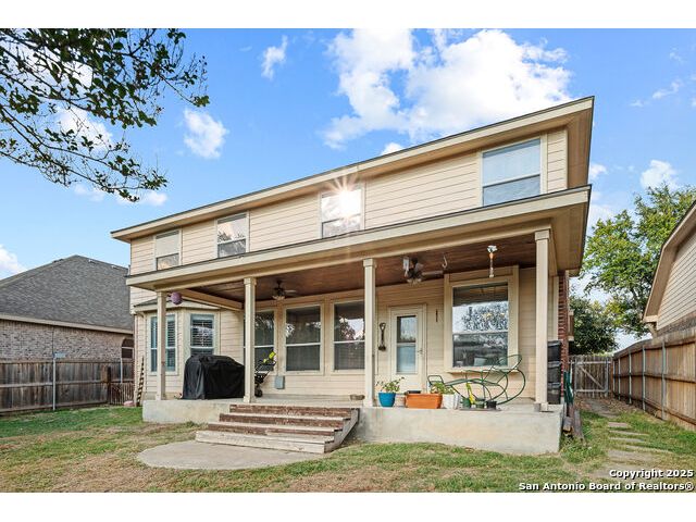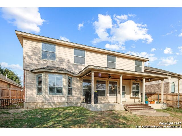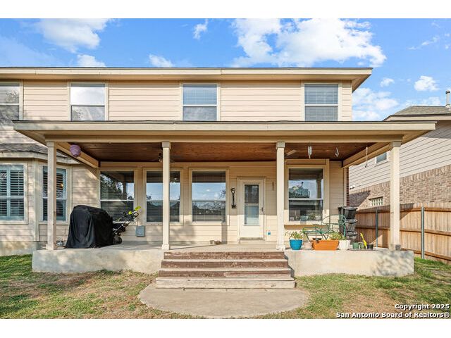 Welcome to 8306 Piney Wood Run! Get ready, this stunning home perfectly balances comfort, style, and thoughtful upgrades. From the moment you walk in, the high ceilings and natural light set a warm and inviting tone. The spacious living areas flow seamlessly, featuring luxury vinyl plank flooring and elegant louvered shutters throughout. The kitchen is designed for both beauty and function, with a large ceramic backsplash, ample counter space, and a cozy breakfast nook complete with a custom built-in bench. Entertain with ease in the two dining areas or unwind in the open game room upstairs. Every detail has been considered, from upgraded light fixtures to the inviting covered patio that overlooks a tranquil greenbelt, ideal for evening gatherings or quiet mornings with a view. The primary suite downstairs is a true retreat, offering a double vanity, a tub and separate shower, and a generous walk-in closet. Upstairs, two generous Jack and Jill bedrooms, combining function with a sense of comfort and privacy. Additional touches include a sprinkler system, extra garage storage, and an outdoor hot tub outlet ready for your personal spa setup. Recent updates provide peace of mind: larger upgraded HVAC (2017), roof (2019), gas water heater (2017), and new water softener (2024). Located OUTSIDE CITY LIMITS, just minutes from I-10 & 1604, you have easy access to The Rim, La Cantera, and San Antonio's best dining, shopping, and entertainment. The neighborhood enhances the lifestyle even further with a park, playground, jogging trails, and a basketball court, all just a short stroll away. With its modern upgrades, inviting layout, and unbeatable location, this home delivers the lifestyle you've been searching for. Come see it for yourself and experience what makes it so special! **Use up to 5% Down Payment Assistance with our preferred lender! See if you meet the program requirements today!**